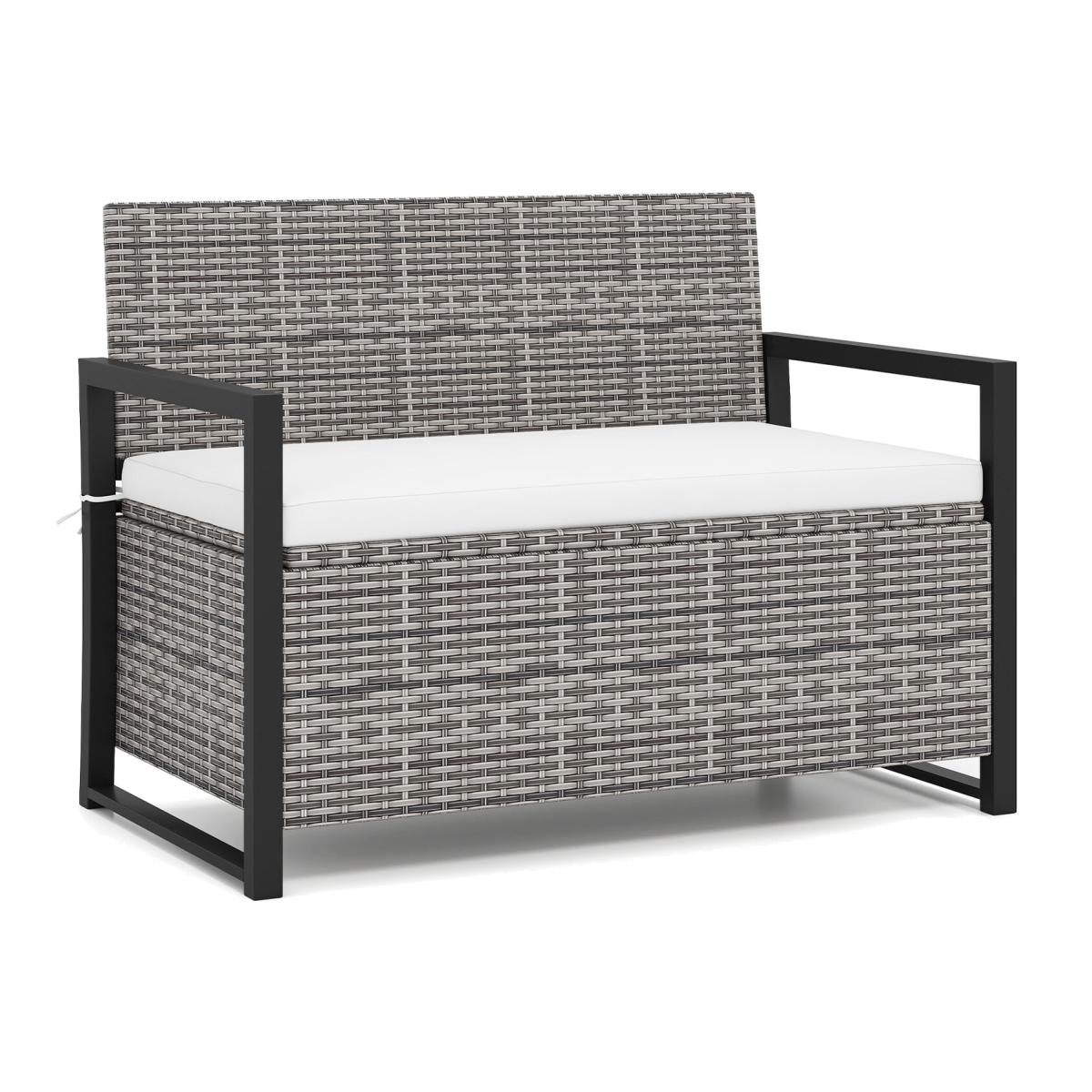 The outdoor storage bench will be a wonderful addition to your yard, poolside, garden, and other outdoor places. The fade-resistant PE rattan and solid metal frame ensure long-term use and outstanding sturdiness. Plus, the inclined backrest and smooth armrests support your back and arms for relaxation. Upholstered in polyester fabric, the seat cushion is padded with elastic fillings to ensure incredible comfort and support.