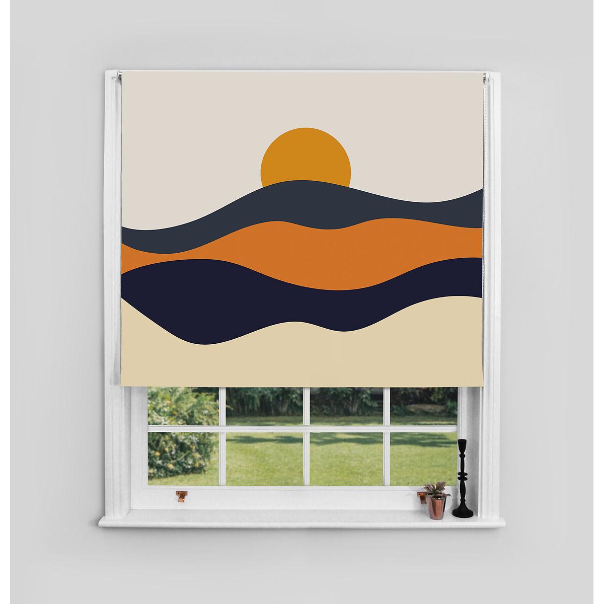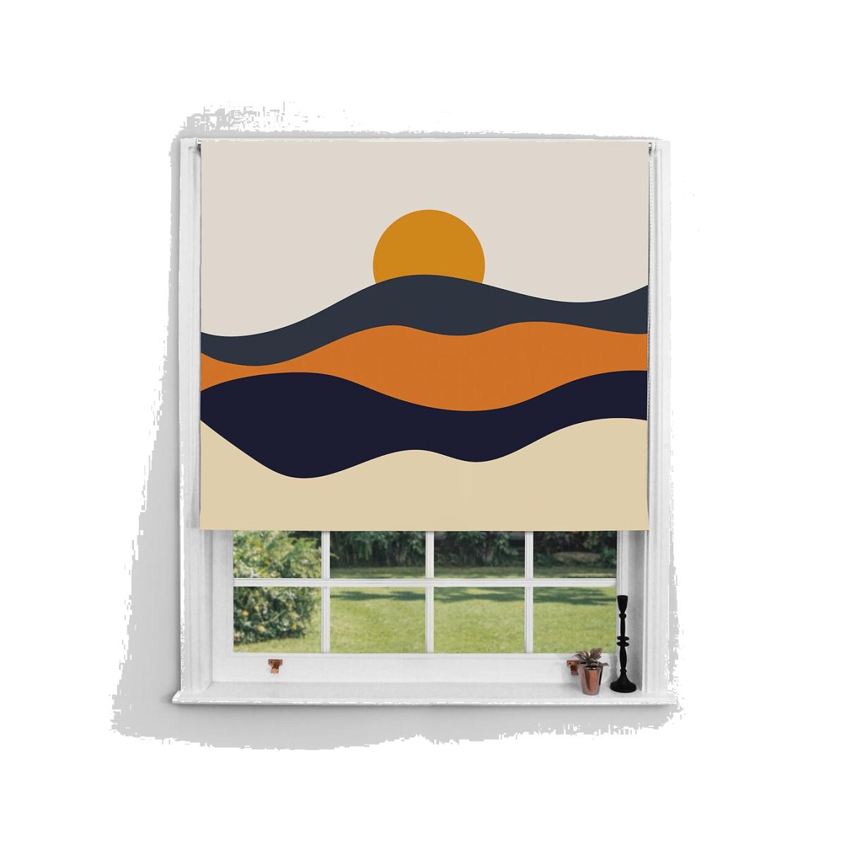 Simple lines and blocks of colour create a stunning artwork of the sun over the waves on this blackout roller blind making your window a talking point. Supplied with all fixings and easy to follow instructions. These products are made to order in the UK, each one will be printed when you place your order. This product will be dispatched by one of our trusted suppliers. You’ll be contacted by their selected courier about your delivery.