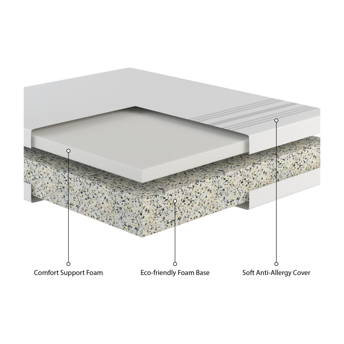 Better for the environment, our pioneering 15cm Depth Mattress is part of our Dream Eco collection. This mattress is fully recyclable and has a specially engineered, 100% recycled Eco Foam base. We have re-used what is already available, resulting in fewer emissions and less waste. This mattress is topped with a layer of Comfort Foam for comfort & stability & also has an anti-allergy and anti-dust-mite cover. End-of-life recycling stops mattresses from going into landfill sites and back into production for new things! Save pounds when compared to branded or high-street memory foam mattresses. Made in the UK, this sustainable mattress has a lower carbon footprint.