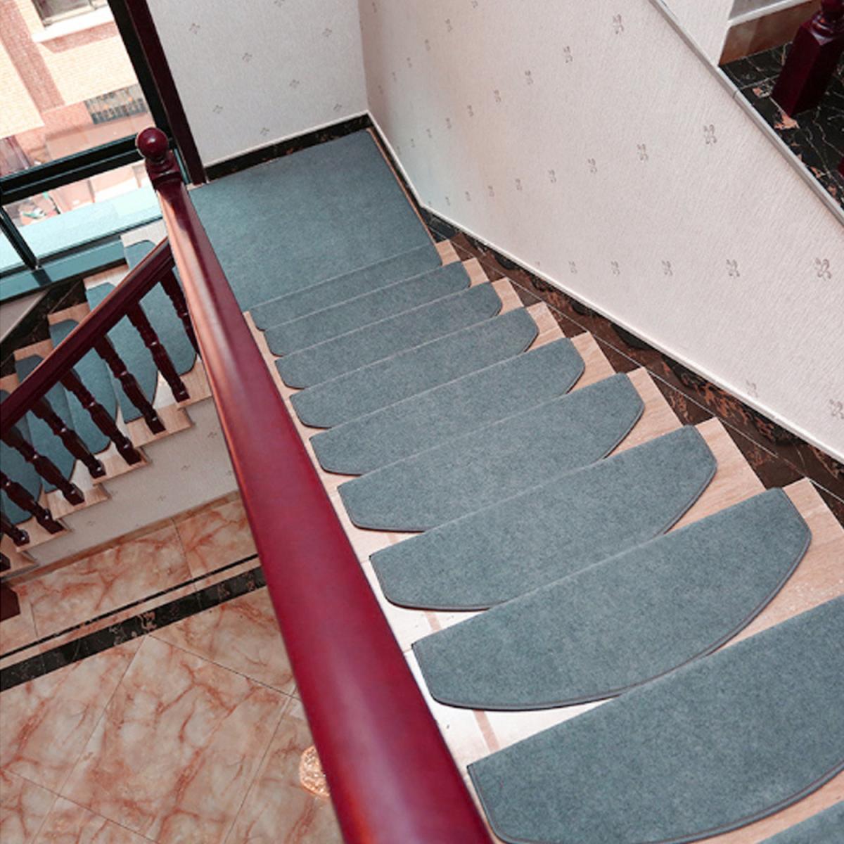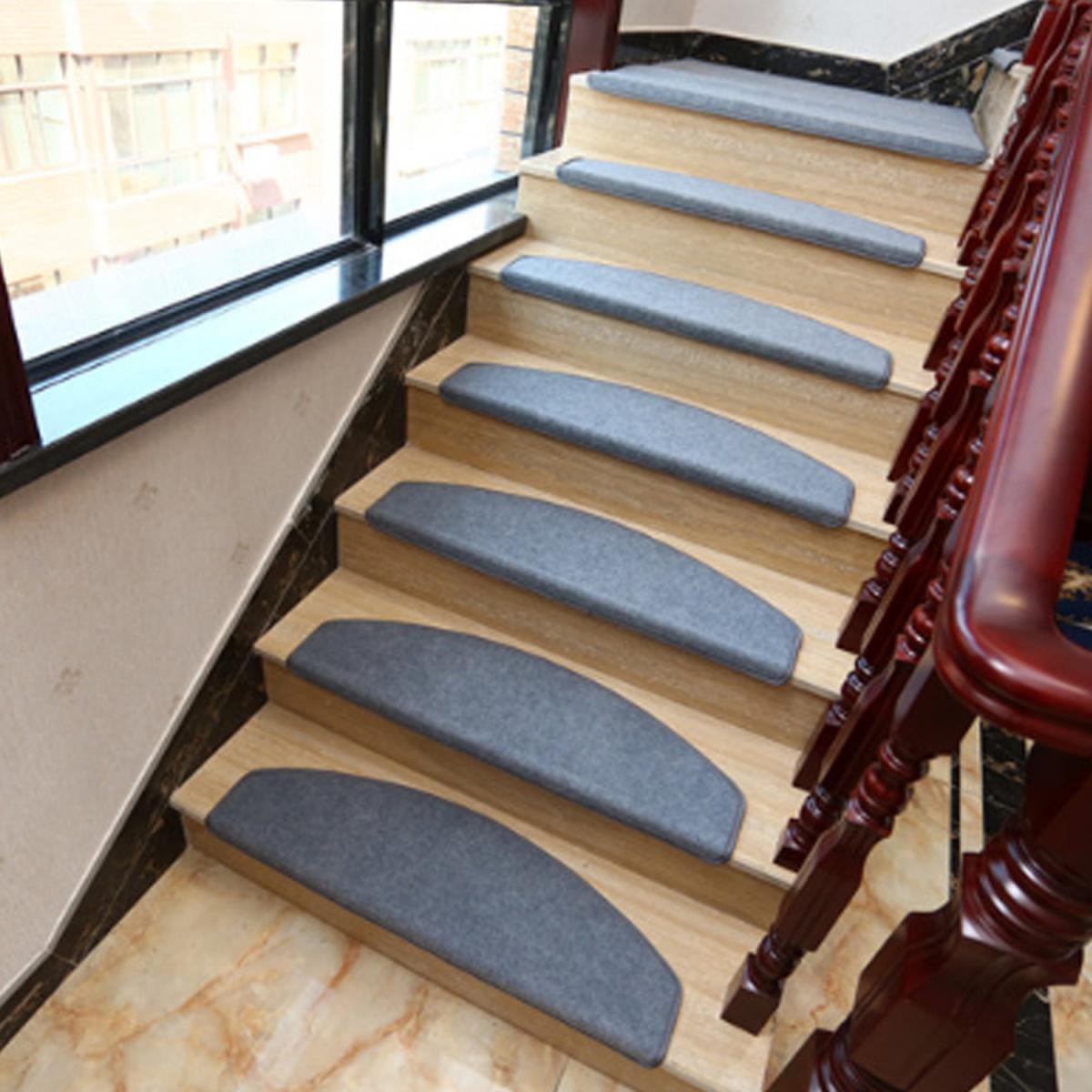 Our stairway carpets are made of premium polyester fabric, high softness, which could protect your feet effectively. Anti-skid bottom provides strong grip and allows you up and down freely. And at the same time, it can reduce the noise caused by the bumps and protect the floor from scratches. Treads come with a self-adhesive surface which covers the whole backing of the tread for easy installation. Users can remove treads easily whenever you want without worrying of leaving residue on your wood stairs. Classic and elegant design blends in any home decorative styles, and it can be washed by hand or washing machine. Perfect for indoor use and protect your children, the elderly and pets from harm.