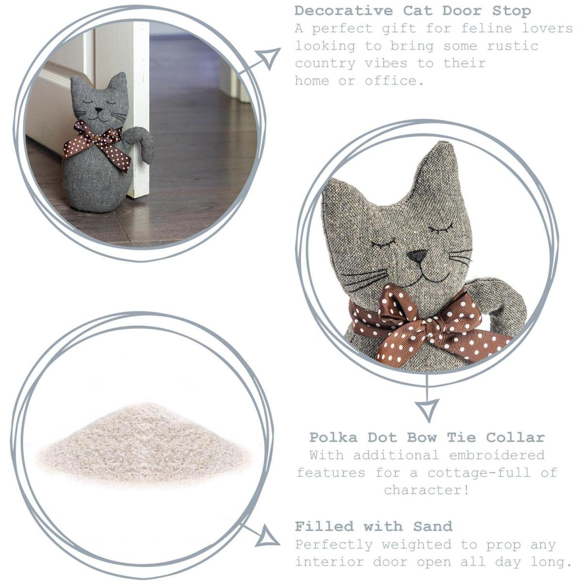 Bring some true rustic chic to your home or workplace with Jasper the Cat Door Stop - part of the immensely popular Nicola Spring Homewares collection. Plush Animal Door Stoppers have become an almost ubiquitous Interior Design Accessories trend in recent years, and with Jasper and his canine friends, Bentley and Milo, you'll find it easy to add an extra dash of warmth and vintage style to any room. Standing a cute 250mm tall, but with a sturdy 1kg of sand inside, you can rely on Jasper to hold the door for you all day long, and his beautiful fabric coat ensures he will always be dressed to impress. He even comes equipped with a fancy bow tie! Whether your home is Scandi, Mid-Century Modern or French Country - with Jasper the Cat Doorstop and his friends, your door is always open. Invite them in today!