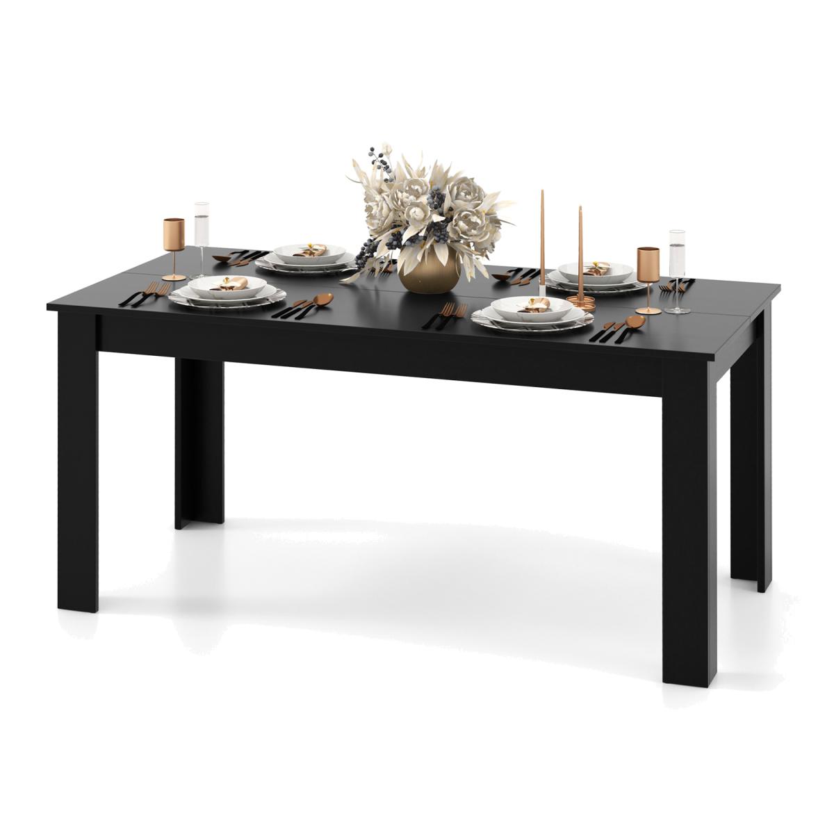 This 160cm black rectangular dining table is a versatile piece that works well in both contemporary and minimalist interiors thanks to its clean lines and sleek finish. I love its simplicity, which allows it to be styled easily with a variety of chair designs and colour schemes. For a modern look, pair it with monochrome chairs and statement accessories. In a more eclectic space, add textured tableware, colourful placemats, or vibrant blooms to soften the dark surface. Practical styling tips include layering with a runner for extra visual interest or placing a large centrepiece to anchor the table during dinner parties. Its straightforward design makes it a flexible foundation for creating a stylish, functional dining area.