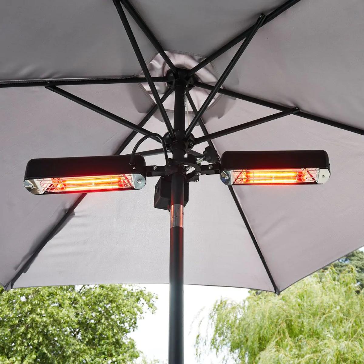 1600 Watt Twin Lamp Outdoor Parasol Radiant Heater, Black