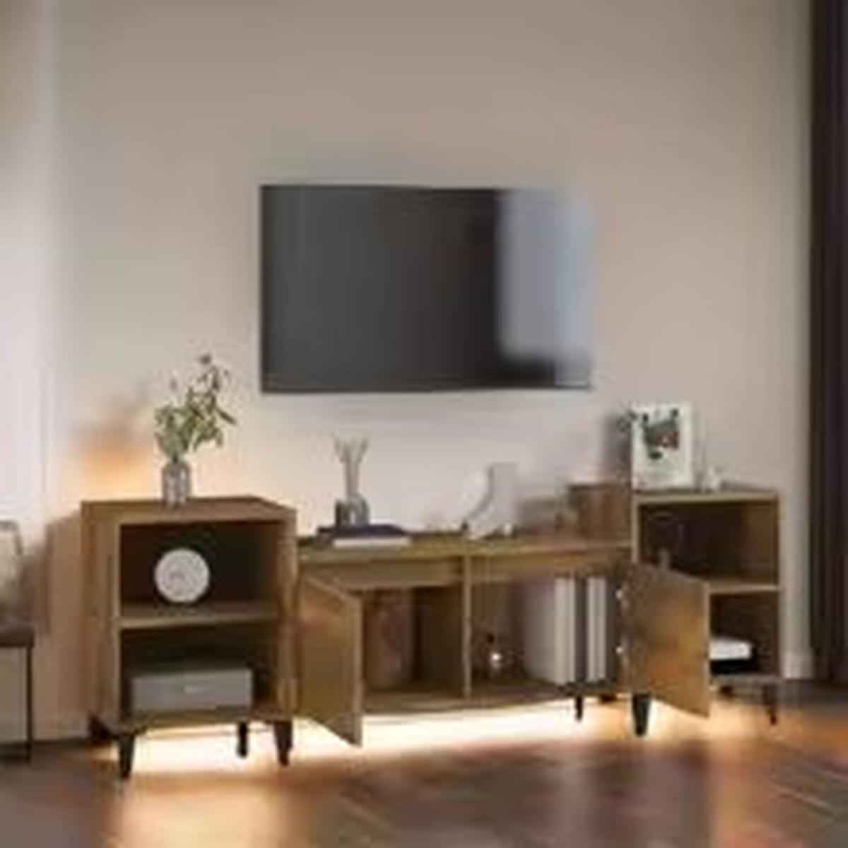 160cm Modern Oak Effect TV Cabinet Wood Storage Unit - Brown