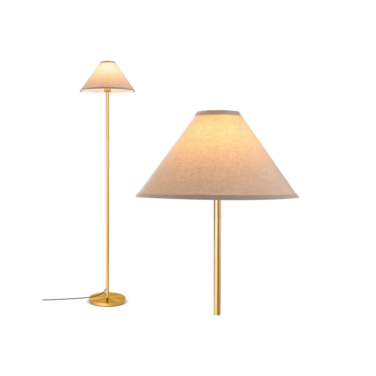 Are you looking for an elegant floor lamp? This lamp combines a gold metal frame and a beige shade design, creating a modern and minimalist stylish atmosphere in your home. With a high-quality metal pole and weighted base for stability and sturdiness, this lamp also features an eye-protecting linen lampshade that softens the light source, providing a comfortable lighting atmosphere. Whether you need a functional lighting fixture or a decorative piece, this modern standing lamp can become the highlight of your living room, bedroom or study.