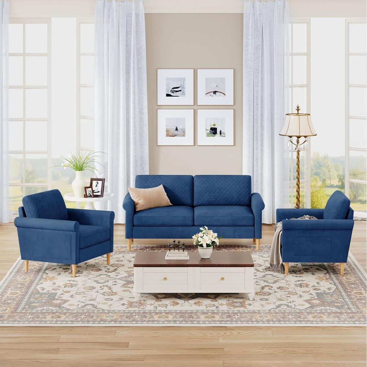 The 2-seater sofa measures 164 cm L x 76 cm D x 85 cm H, with cushions sized at 144 cm L x 60 cm D. The armchair measures 80 cm W x 75 cm D x 86 cm H, with cushions of 60 cm D x 60 cm W. This versatile set is perfect for a range of living spaces and is designed for optimal relaxation. Both the sofa and armchairs are equipped with non-slip foot pads, solid wood legs, and a reinforced frame, ensuring they support up to 270 kg and 180 kg respectively, providing lasting durability and stability. Crafted from high-quality polyester fabric with removable cushions, the seats are filled with a combination of pocket springs and high-density sponge. This blend offers superior comfort, resilience, and support. Enhance your living space with this stylish set, offering exceptional comfort and elegant design, perfect for both casual lounging and sophisticated settings.