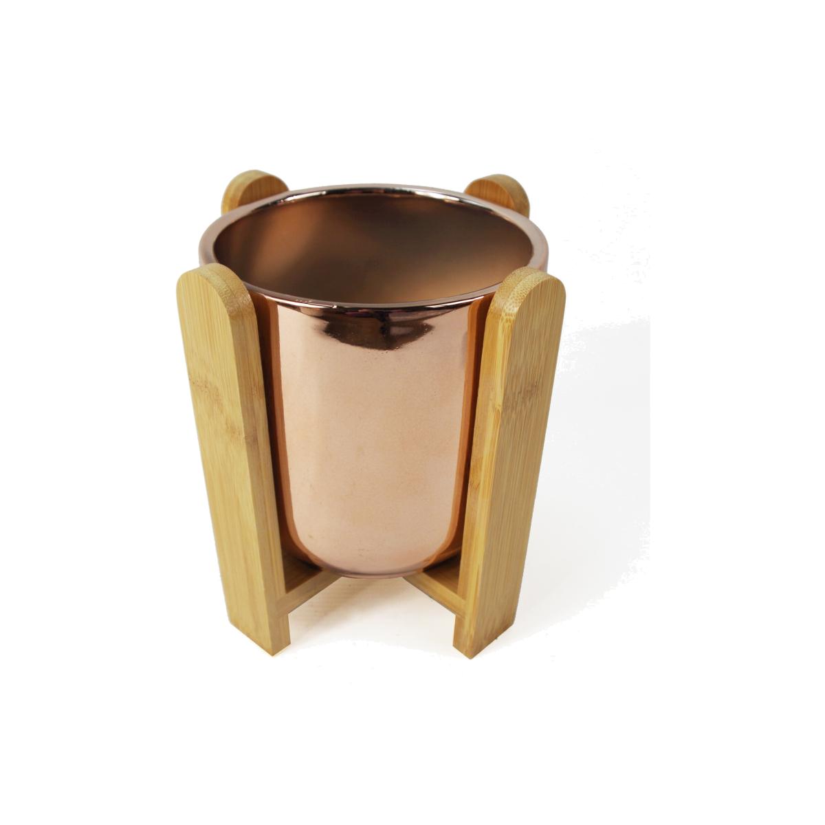 16cm Gold Ceramic Planter with Bamboo Stand - Yellow