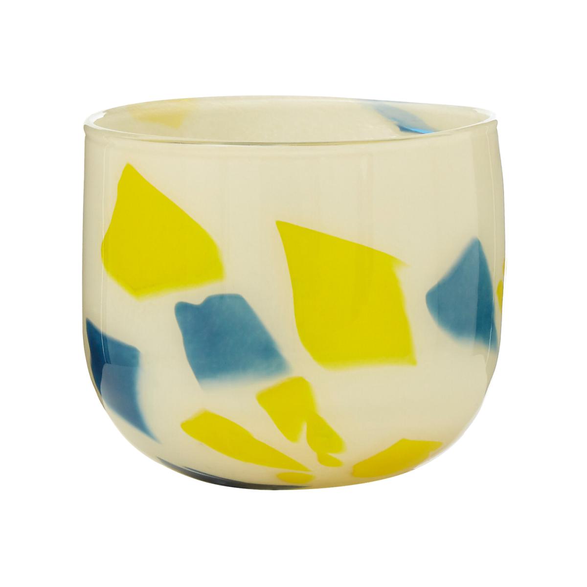 This colourful glass pot is a real statement piece that works well in modern or eclectic interiors, adding a splash of colour and visual interest without overwhelming the space. I love it for its playful abstract pattern and vibrant yellow and blue tones, which can brighten up a windowsill, bookshelf, or side table. It’s versatile enough to hold a small houseplant, succulent, or even dried arrangements. For styling tips, try pairing it with neutral or monochrome surroundings to make the colours pop, or layer it with other glassware for a curated look. Keep in mind its size - at 16cm, it’s perfect for small plants or as a decorative feature, and it can easily slot into both minimal and more maximalist schemes.
