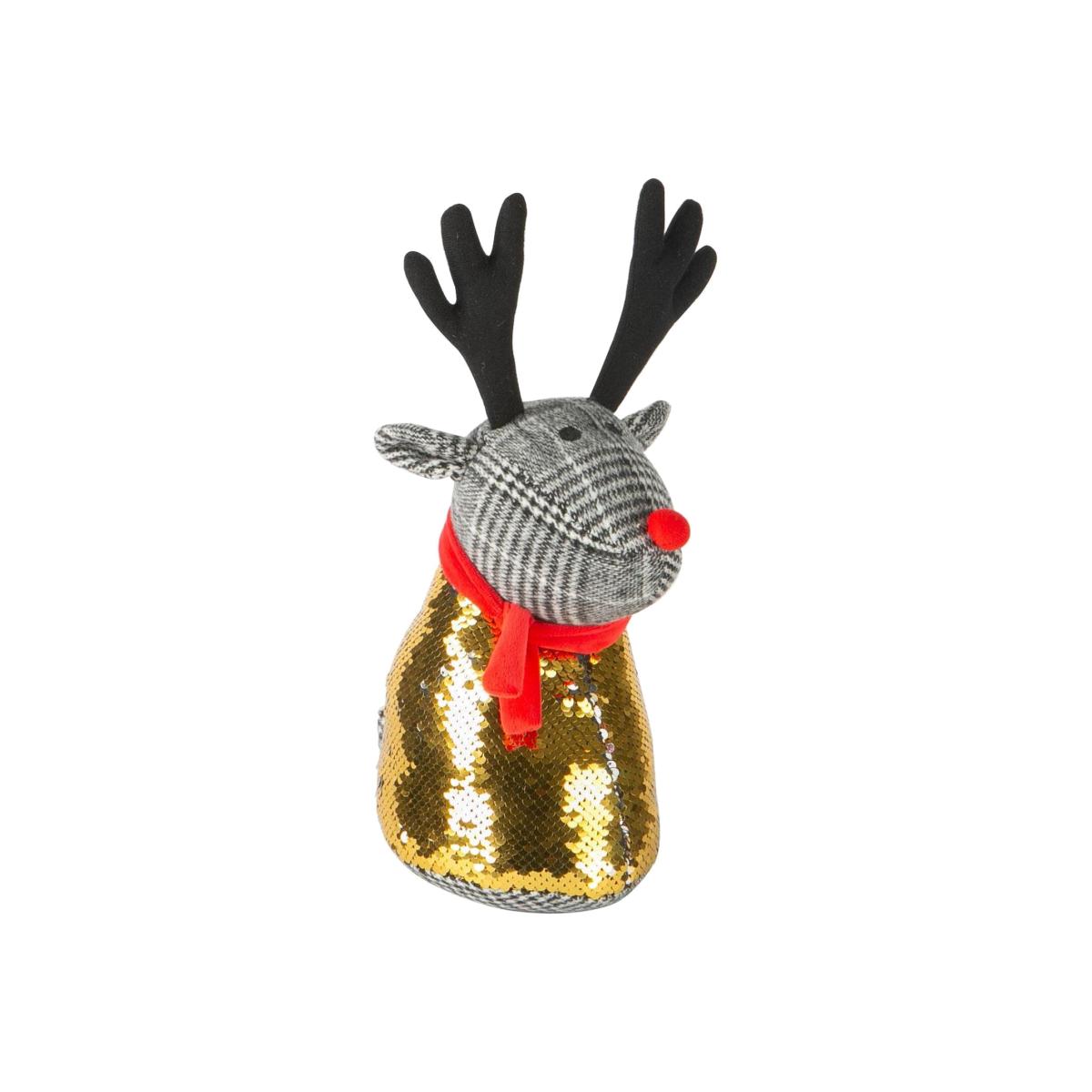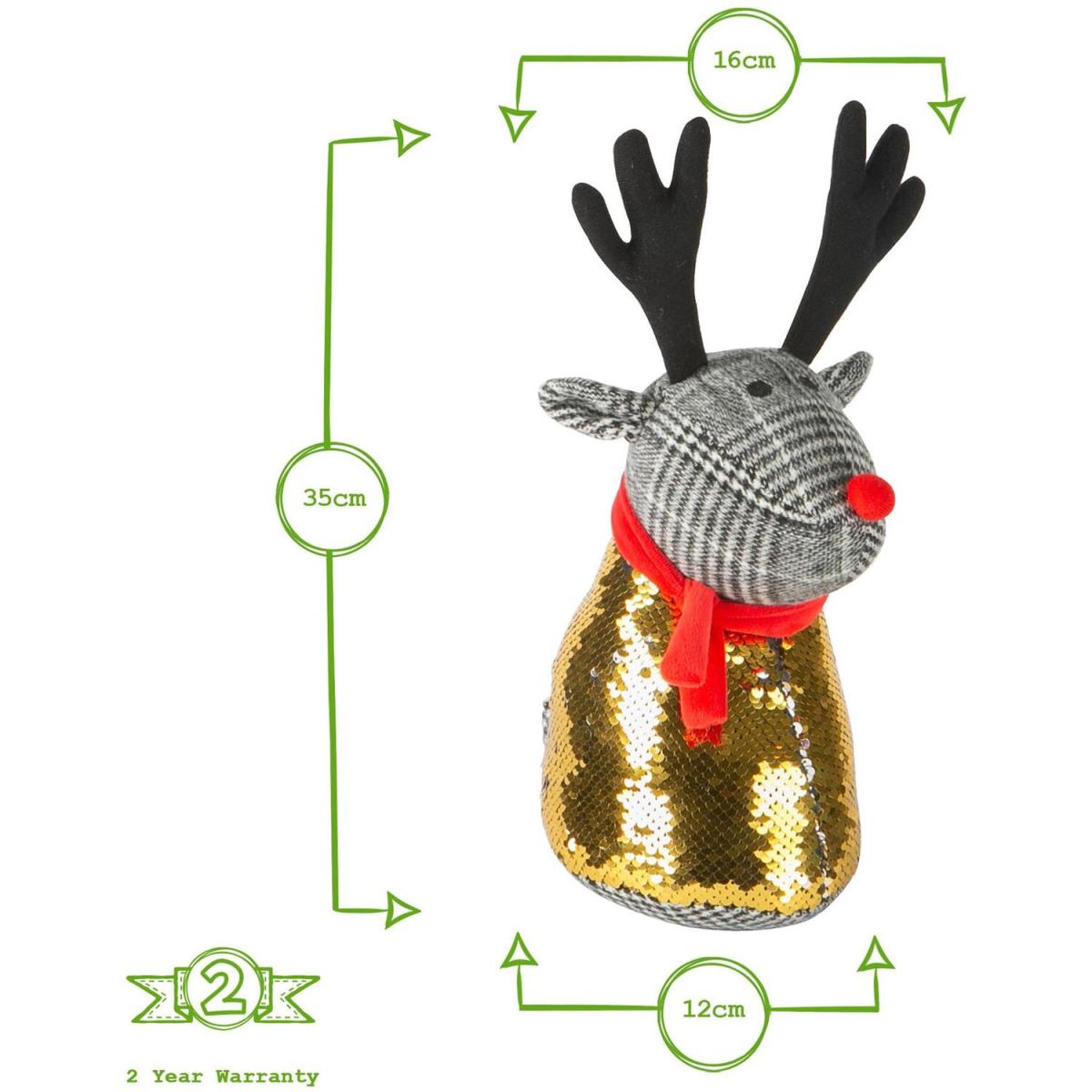 Bring some seasonal rustic chic to your home or workplace with the Reindeer Door Stop - part of the immensely popular Nicola Spring Homewares collection. Plush Door Stoppers have become an almost ubiquitous Interior Design Accessories trend in recent years, and with Rudolph the Red Nose Reindeer and his friends, Santa and the classic Christmas Pudding, you'll find it easy to add an extra dash of warmth and Christmas Spirit to any room. Standing a cute 33cm tall, but with a sturdy 1kg of sand inside, you can rely on Rudolph to hold the door for you all day long, and his interchangeable gold or silver sequin coat ensures he will always be dressed to impress. Whether your home is decked out to the 9's for the christmas madness to begin, or you want subtle touches of seasonal spirit - with Rudolph and his friends, your door is always open. Invite them in today!