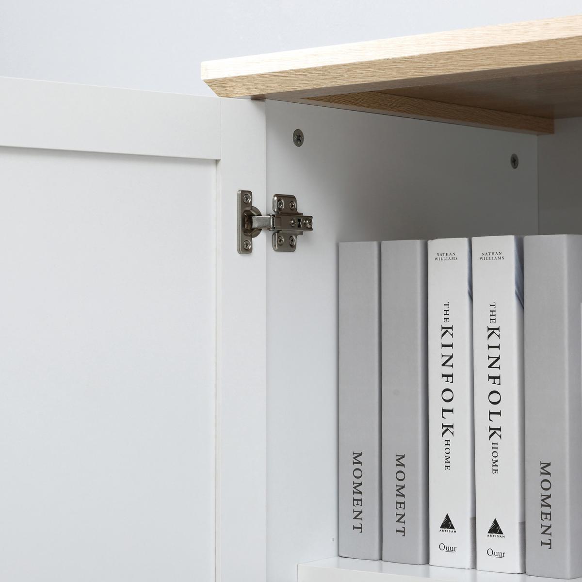 Combining elegance and functionality, this freestanding storage cabinet is ideal for organising your home efficiently and beautifully. Built from strong MDF for wearability over the years, the inside features four wide shelves for plenty of storage space, with a white painted finish so it looks clean and fresh regardless of its location. On the bottom sits an elevated base to protect it from damp and damage. So, whether it's for storing food in your pantry, keeping files in check in your office or simply for organising clothes in your bedroom, this is the cabinet to have.
