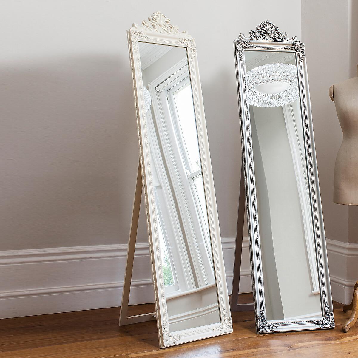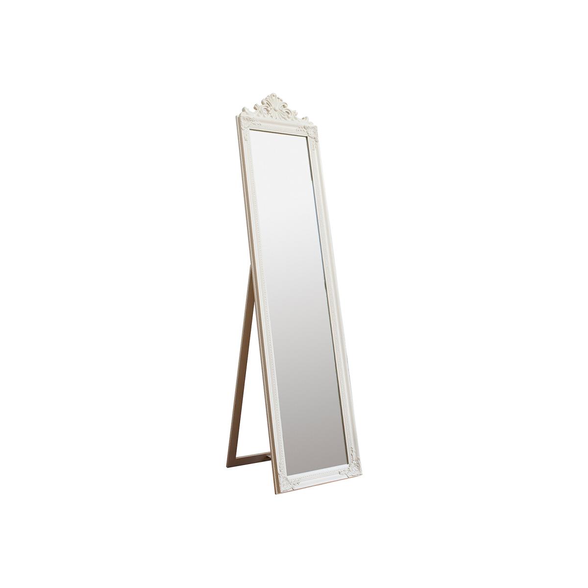 Chic free standing wood framed cheval with decorative crest in a white painted finish. Please note: this product cannot be delivered to all Offshore Islands Northern Ireland or Republic of Ireland. This product will be dispatched by one of our trusted suppliers. You’ll be contacted by their selected courier about your delivery.