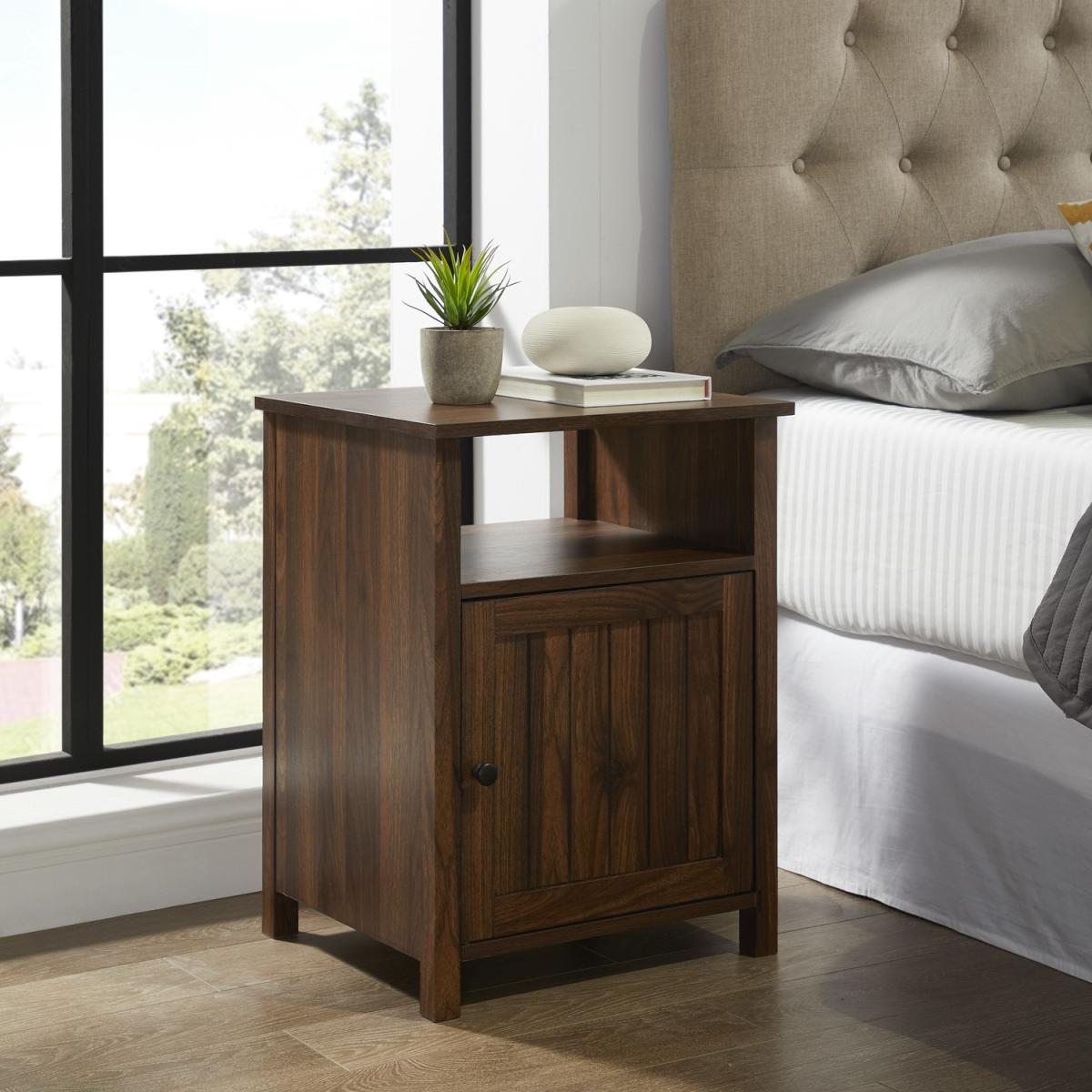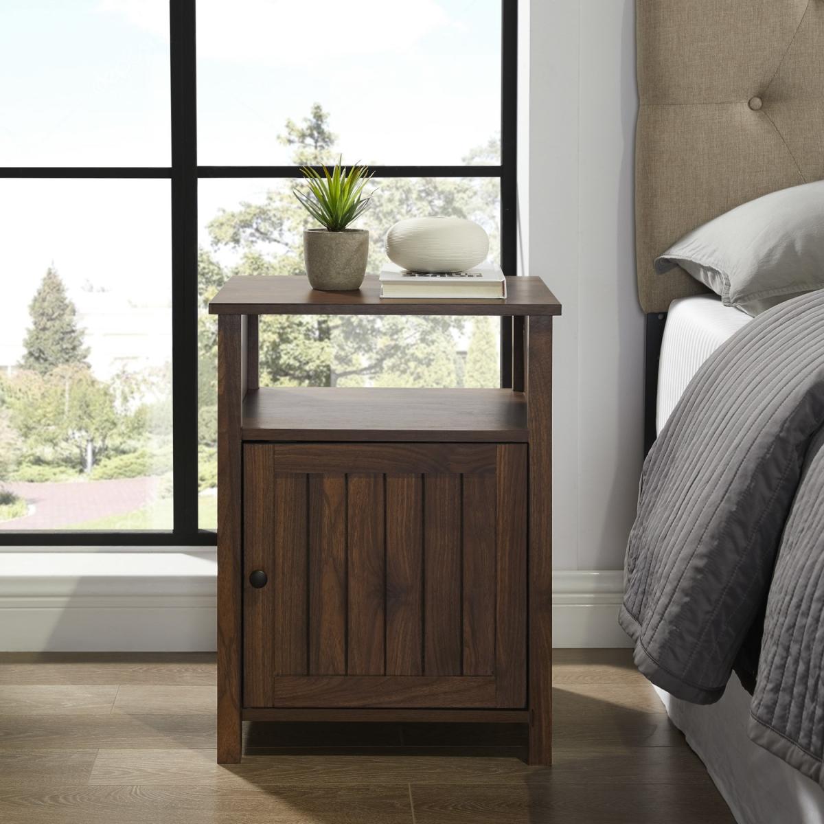 Dimensions H145 x W125 x D125 cm. Keep life simple with this grooved door side table. An open cubby rest at the top of the unit which provides a great place to store electronics small boxes or other accessories. The bottom of the end table has a door with soft close hinges. Create a coastal farmhouse or traditional tone in your living room in a snap! Features. Transitional style side table. Enclosed top shelf. Open and closed storage. Adjustable soft close door hinges1 grooved door. Ships ready-to-assemble with step-by-step instructions..