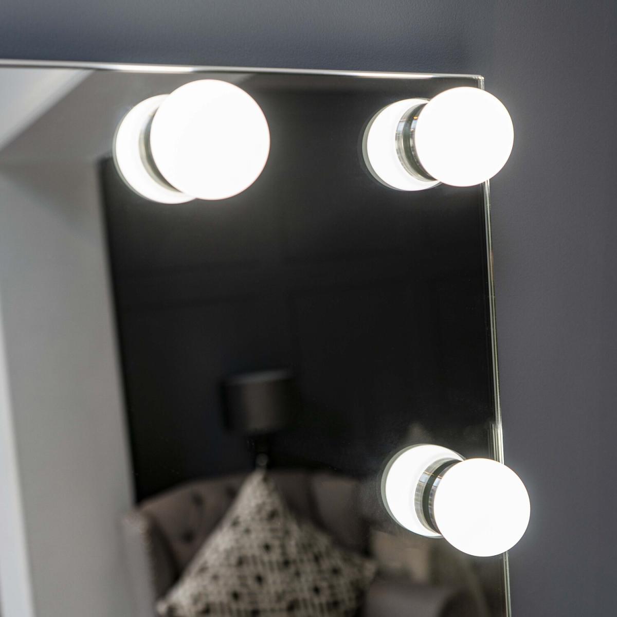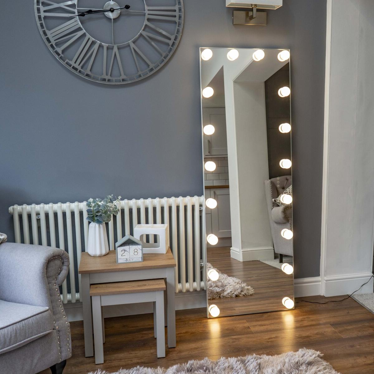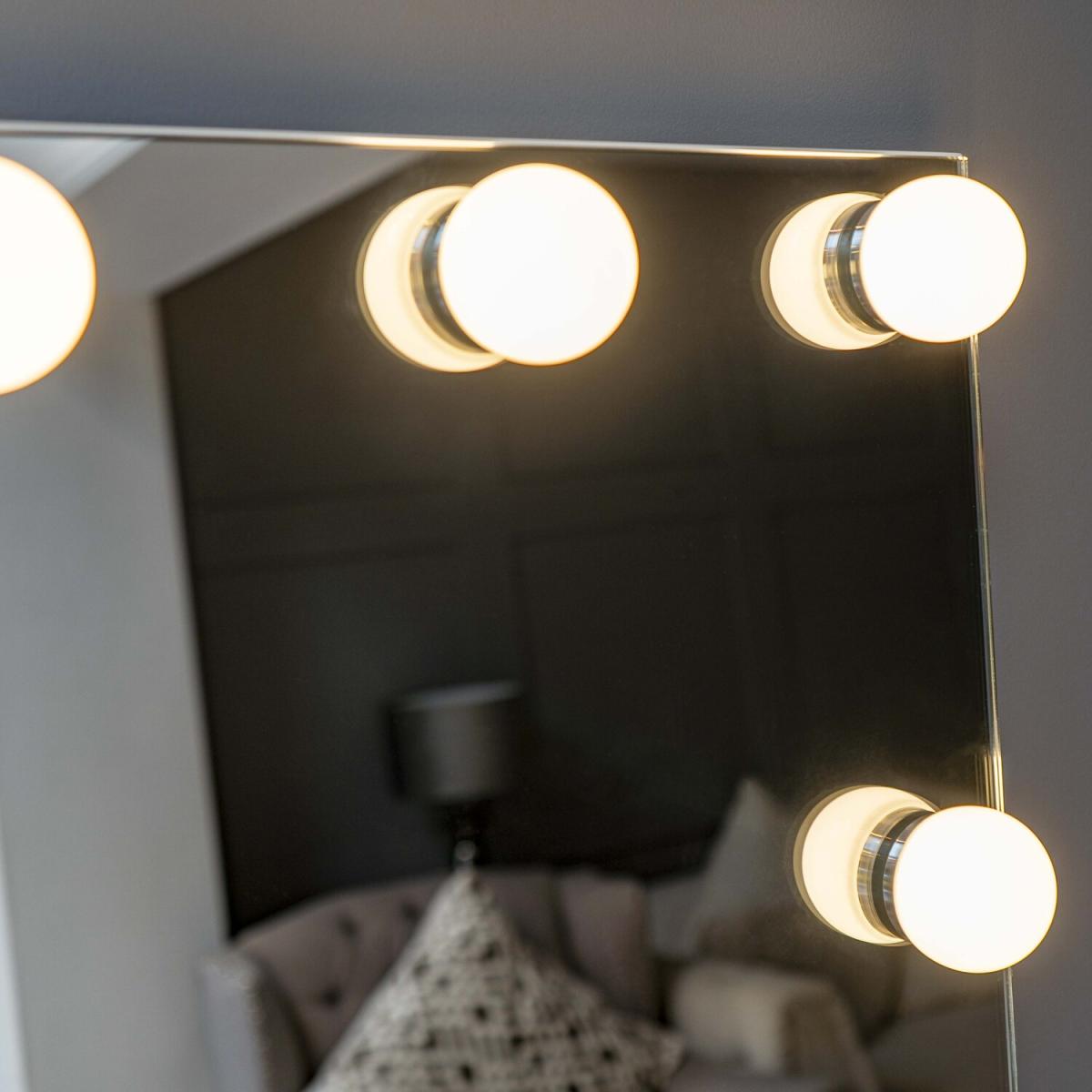This Full Length Hollywood Mirror is the perfect accessory to any glam dressing room. Not only can you ensure your hair and makeup is flawless, but also confirm a full fit check. It doesn't get more perfect than this. Simply lean against the wall or mount for maximum impact. Plugging directly into a wall socket, there is no need to mains wire. With 3 temperature light settings at the touch of a button, you can also ensure your look is flawless in every lighting. Not only this, but you can also dim and increase the overall brightness! The bulbs are non-replaceable, but the mirror does come with a 12 month manufacture warranty for peace of mind.