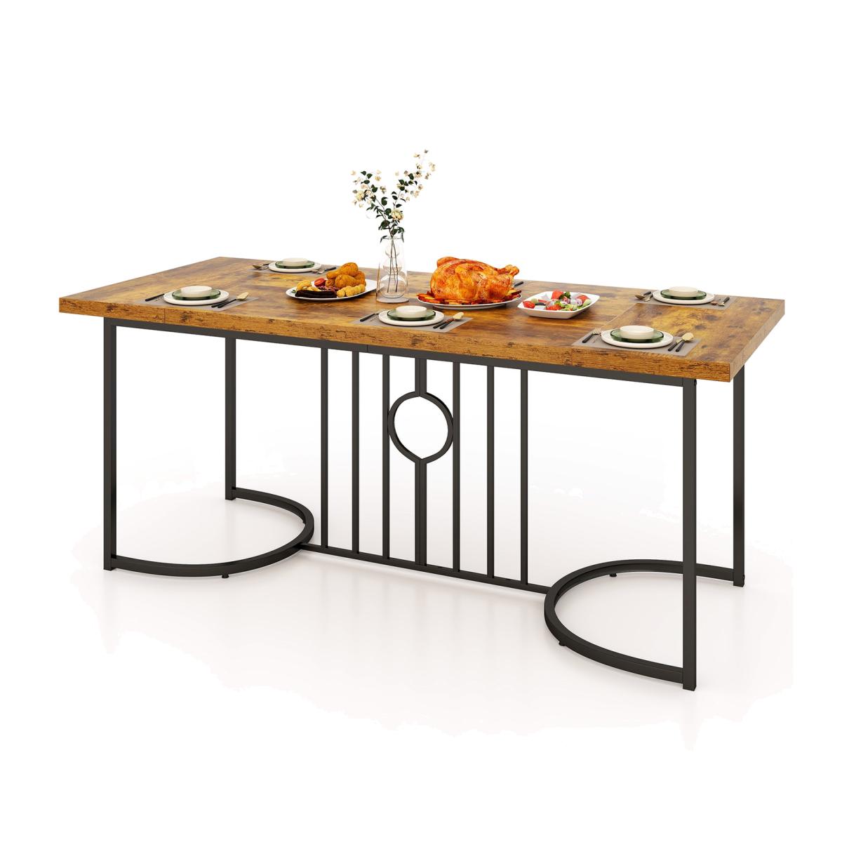 Provide a Reliable and Attractive Centerpiece for Your Dining Space! This wooden dining table with a metal frame measures 180 x 79 x 75 cm (L x W x H), which could comfortably hold 6-8 individuals, providing ample room for family gatherings, dinner parties, or everyday meals. The table's size ensures that everyone has enough elbow room to enjoy their meals without feeling cramped. Supported by robust metal tubes and a 4 cm thickened tabletop, the table ensures a weight capacity of up to 135 kg, making it suitable for daily use.