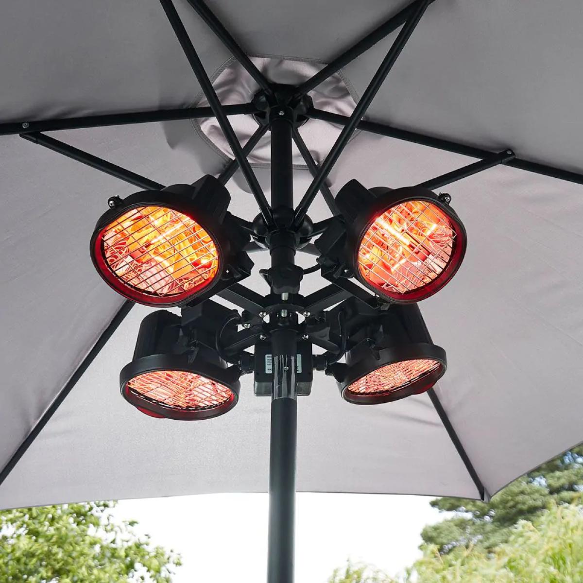 1800 Watt 4 Lamp Outdoor Parasol Radiant Heater, Black