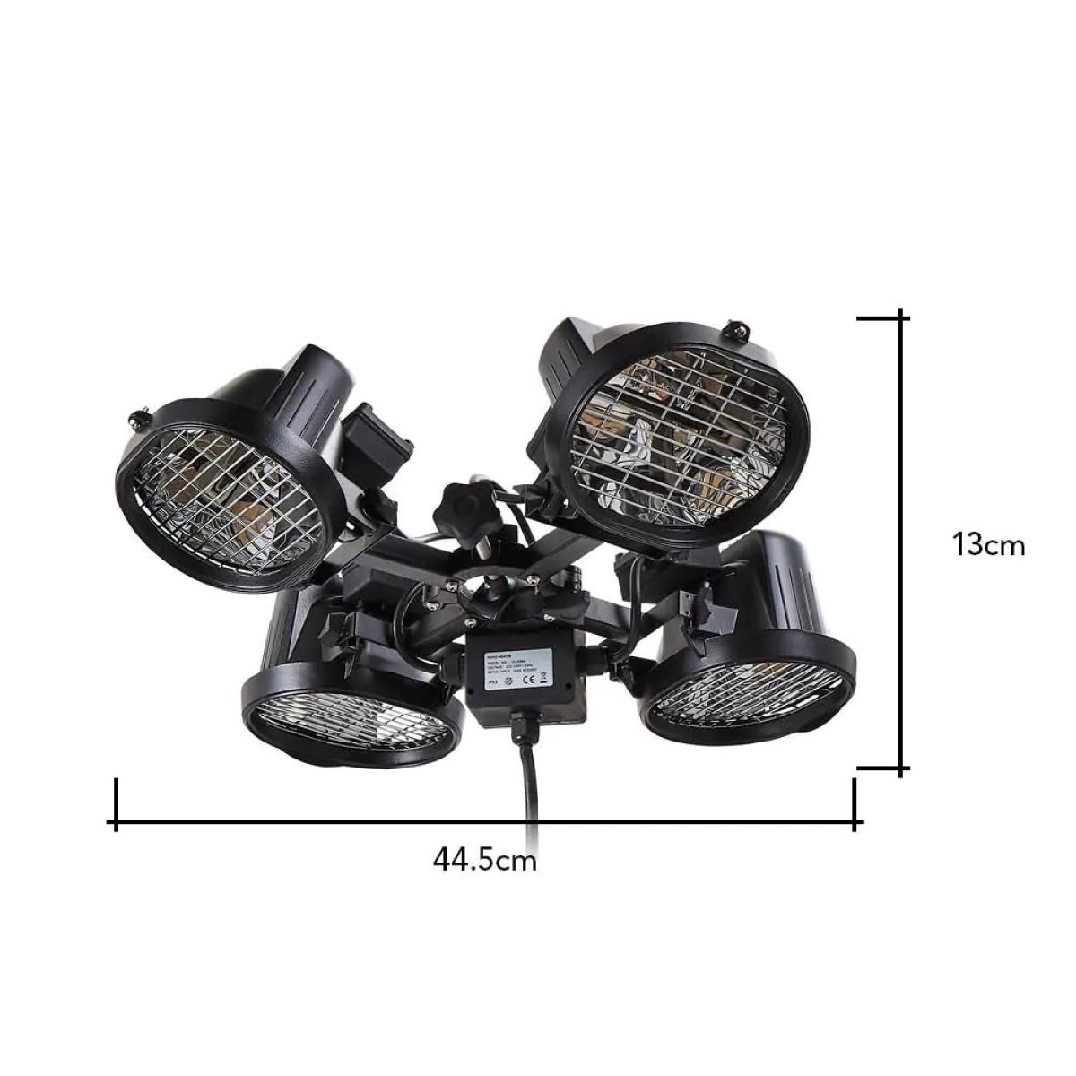 Make the perfect addition to your garden parasol with the 1800 Watt 4 Lamp Outdoor Parasol Radiant Heater. This heater is finished in a modern black colour and features 4 adjustable heater heads so that you can direction them in any position of your choosing. Able to clamp to any parasol stand, this heater also has a great heating distribution range of 12 metres.