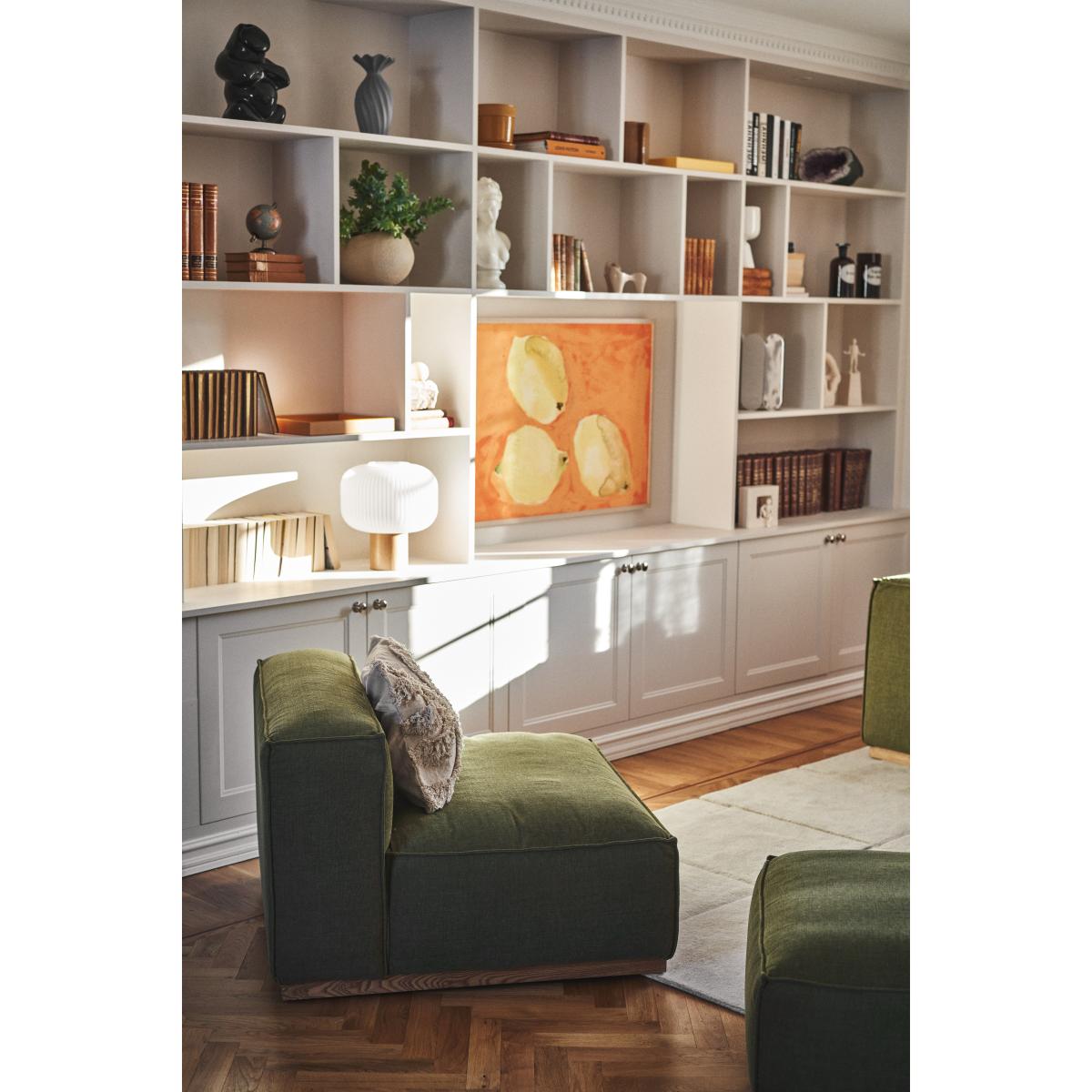 I’m a fan of this Luisa green 1.5-seater for its clean lines, low profile and rich olive hue - it instantly anchors a room without overwhelming the scheme. Its compact size suits urban flats, home offices or snug reading nooks, and the mid-century inspired shape works equally well in Scandi minimalism, eclectic boho or contemporary country interiors. For styling, pair it with a light timber side table or slim-legged metal lamp to play up the base wood and add visual contrast. A neutral wool rug beneath and a textured throw in cream or terracotta will soften the look, while a couple of botanical prints or a tall potted plant alongside will echo the green tone and bring the corner to life.