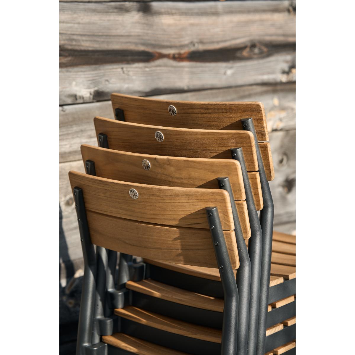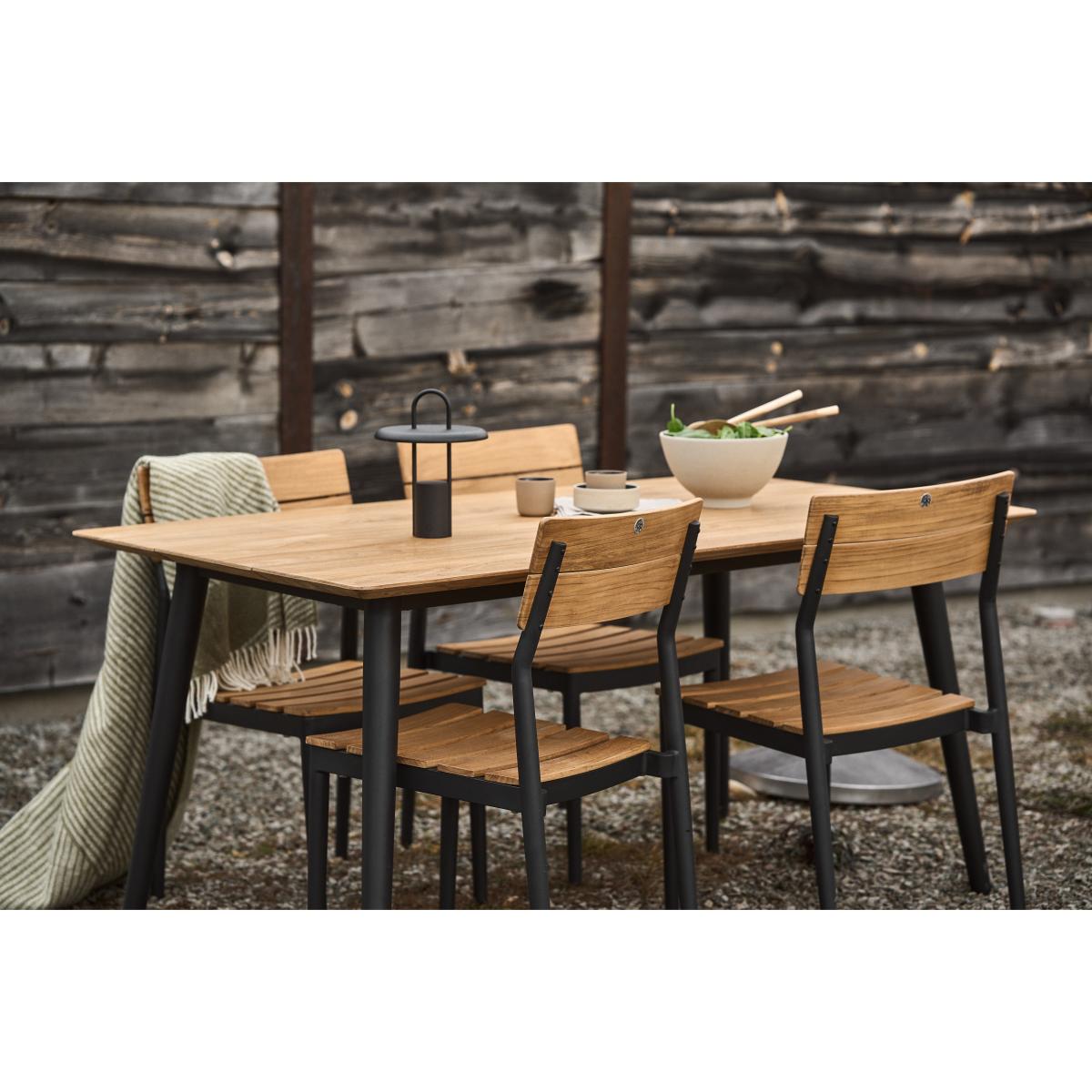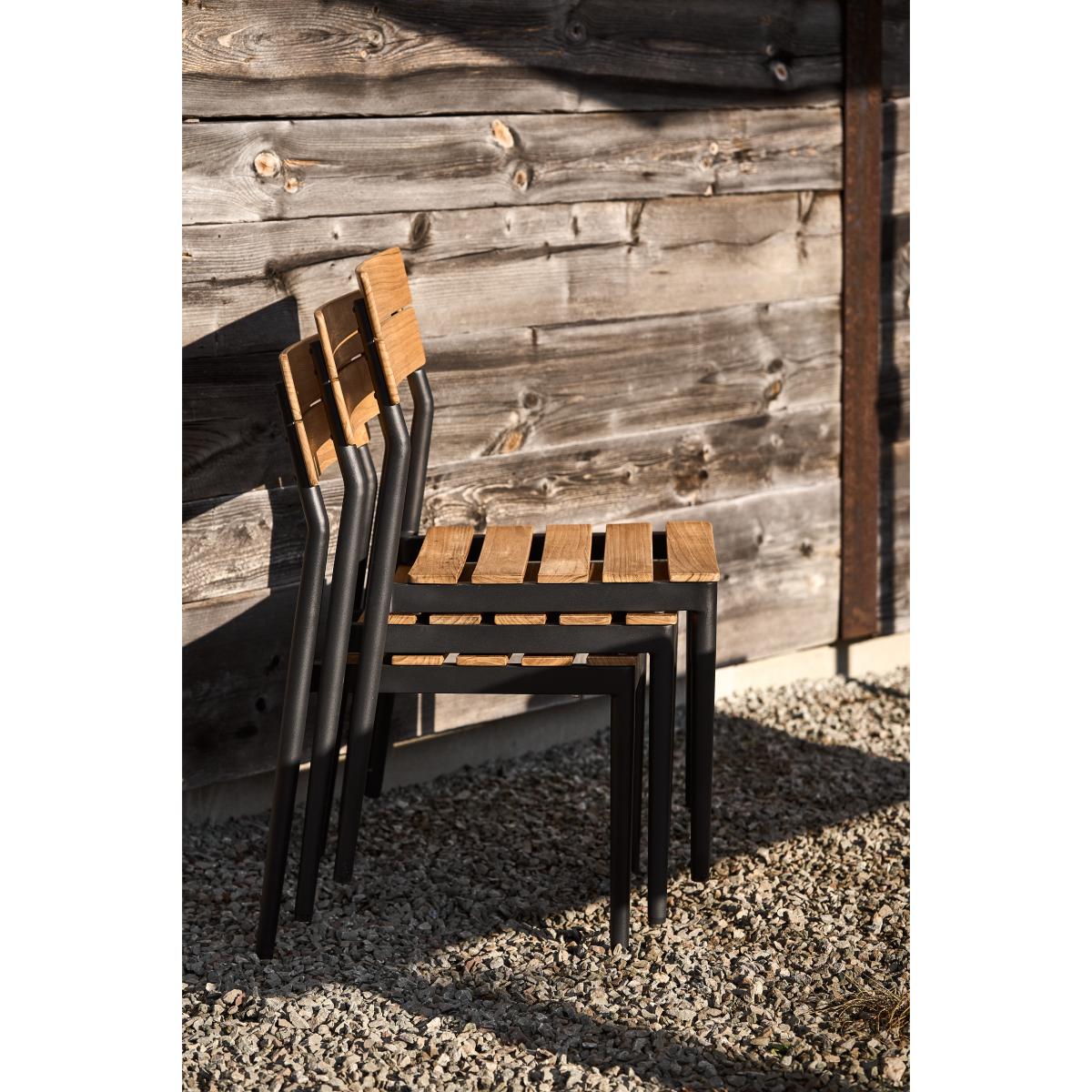 I love this garden chair because of its clean, minimalist design and durable teak slats that bring warmth and texture. It works particularly well in modern or Scandi-inspired interiors that blend indoor and outdoor living, as well as in relaxed, informal dining spaces. Practical styling tips include pairing it with a simple wooden or metal table for an cohesive look, and adding cushions for extra comfort and colour. Its natural materials make it versatile, so it can be easily integrated into both contemporary and rustic settings, making it a functional yet stylish choice for outdoor dining or casual indoor spaces.