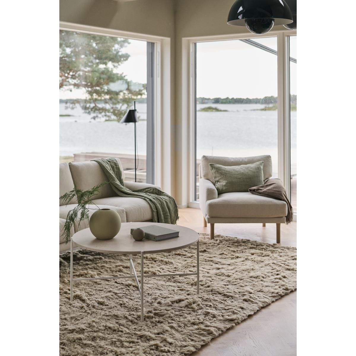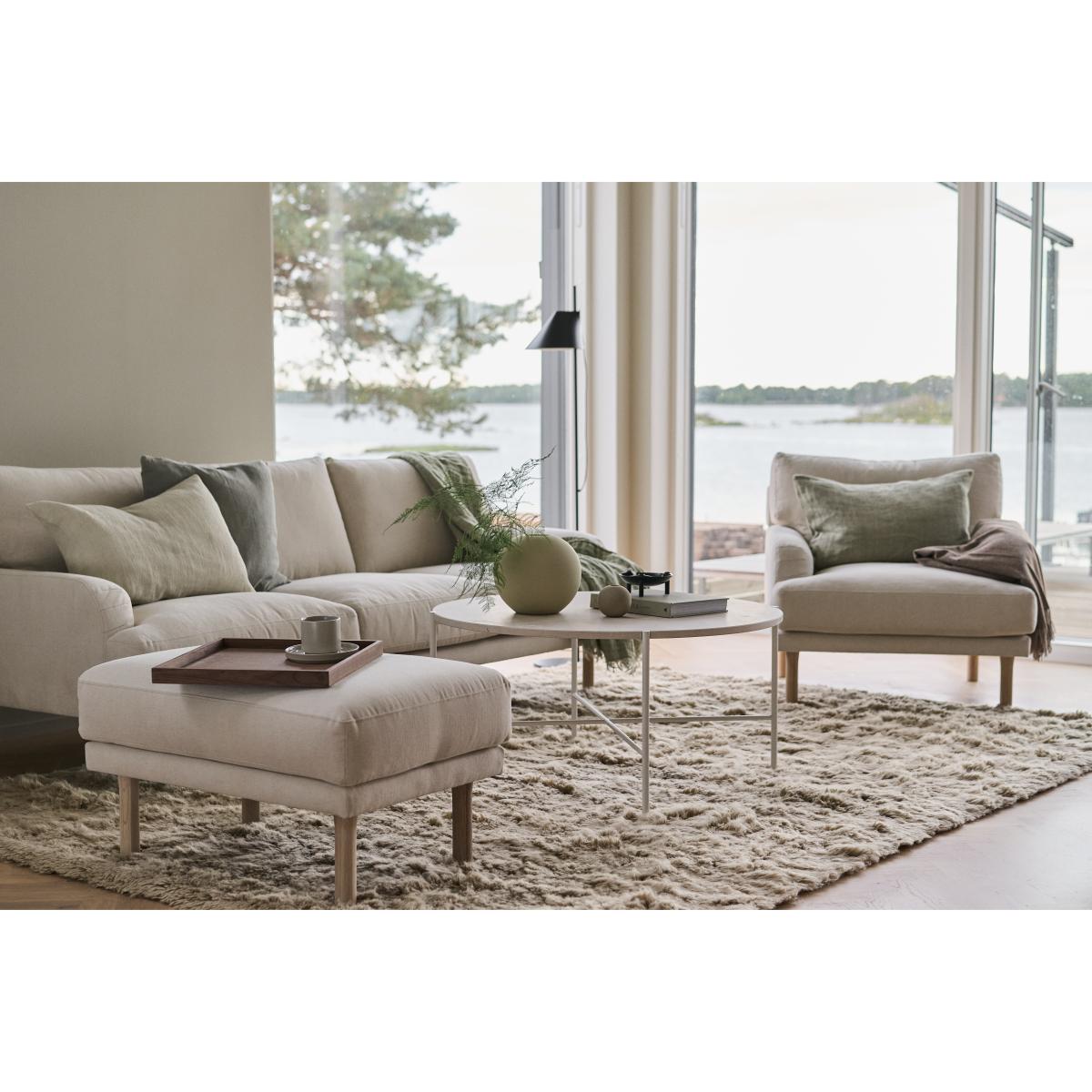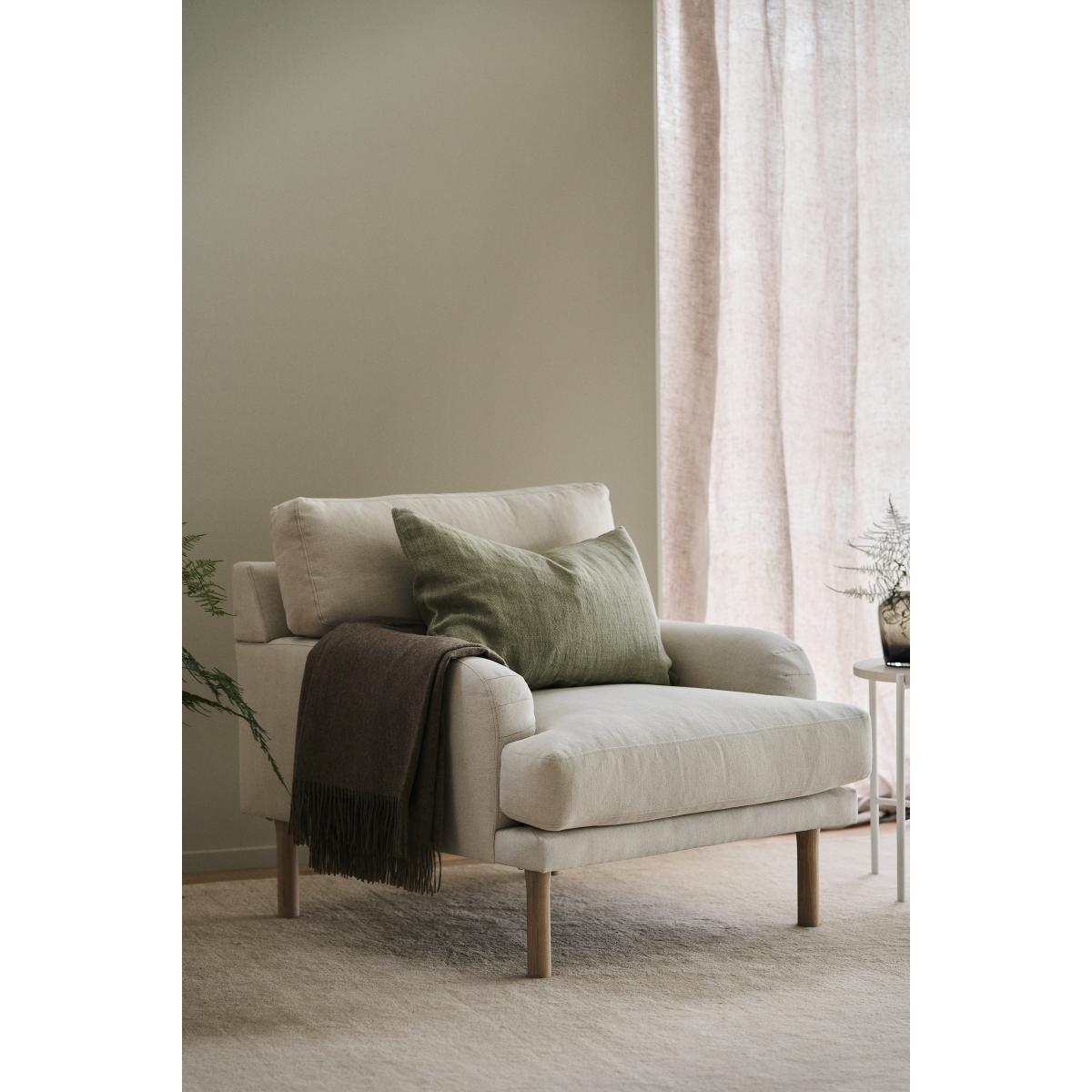 Lidnäs armchair from Sweden in 1898 is a generous armchair with a pine frame and a seat with nozag springs, which creates maximum comfort. The upholstery, which is made of cotton and linen, is removable, which makes it easier for spills and stains. Feel free to combine with the footstool and sofa from the same series for a cohesive feel in the living room.