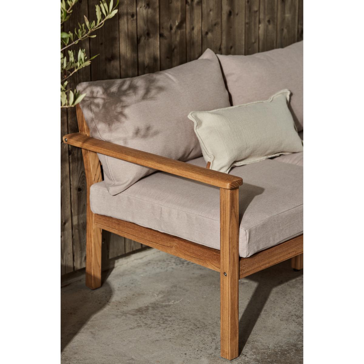 I love this three-seater sofa because of its timeless teak frame combined with soft, neutral cushions, making it versatile for various interiors. It pairs beautifully with modern, Scandinavian, or coastal styles, especially when you want a relaxed yet polished look. Practical styling tips include layering with textured throws and cushions in earthy tones or subtle patterns to add warmth. It also works well in both open-plan living areas and more contained sitting rooms, and because of its neutral palette, it’s easy to adapt with colourful accessories or minimalist decor. This sofa’s simple, functional design makes it a great anchor piece that brings a natural, understated elegance to any space.