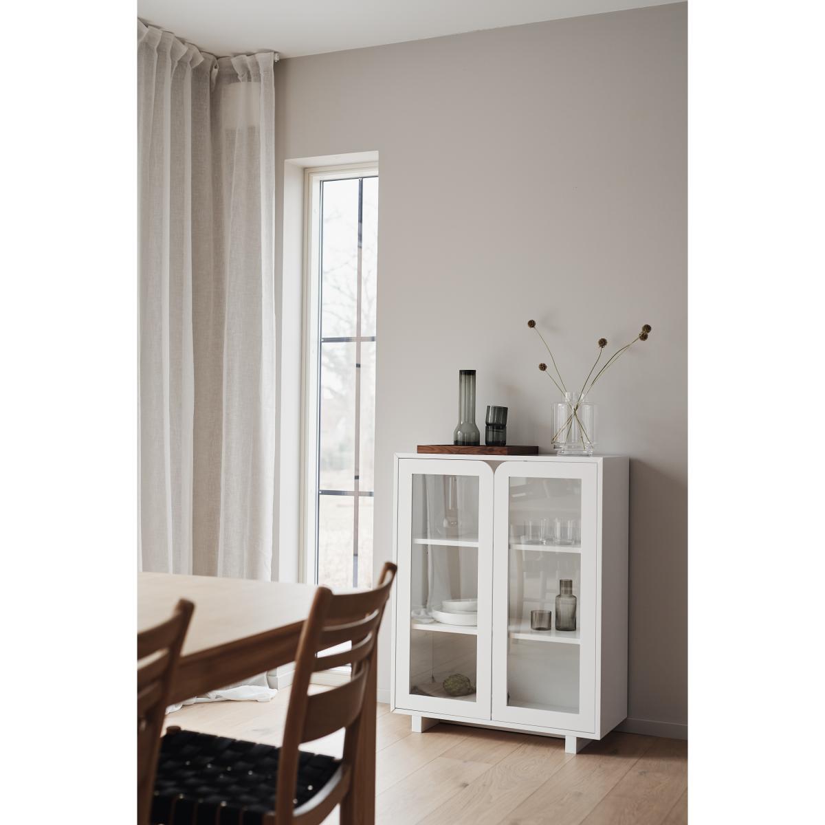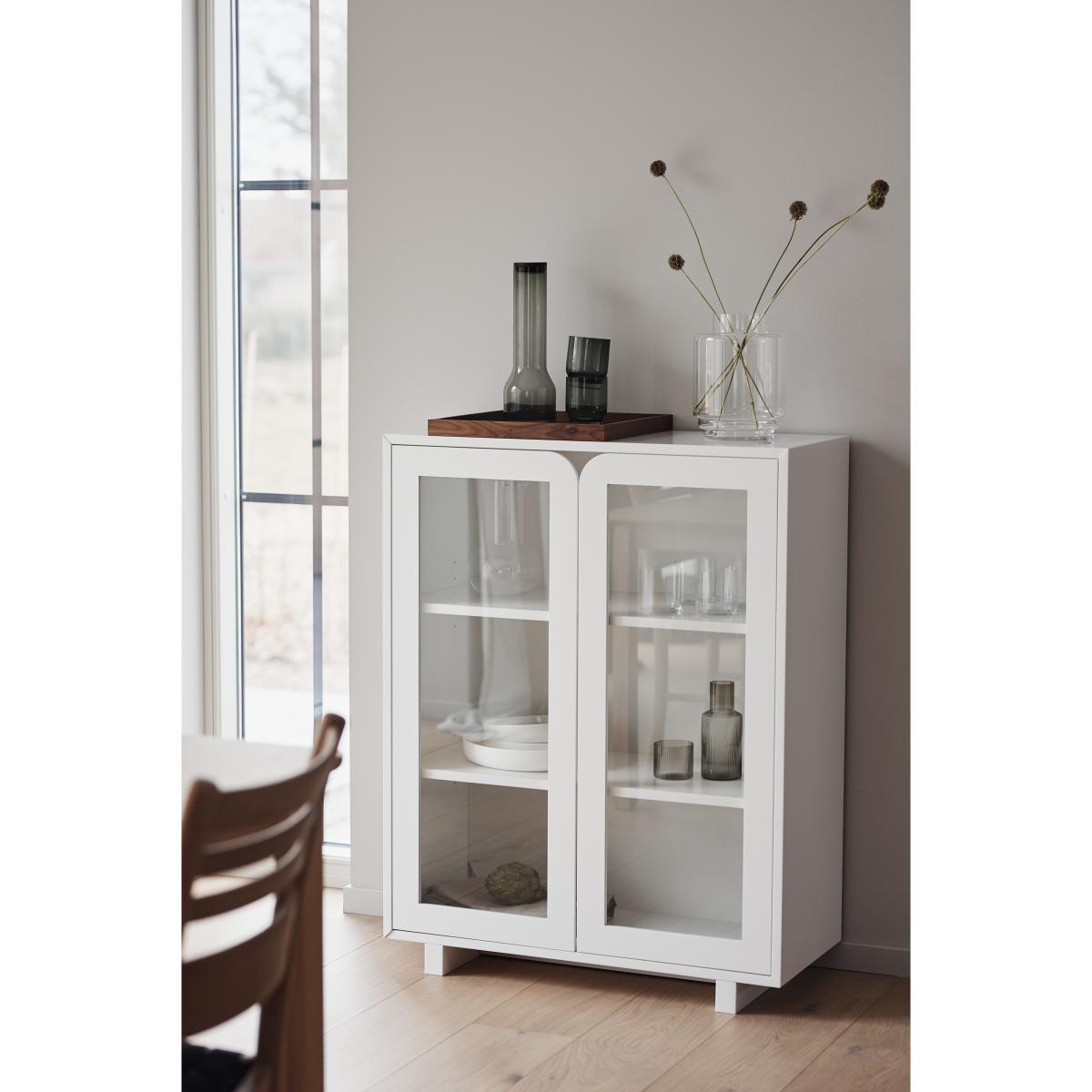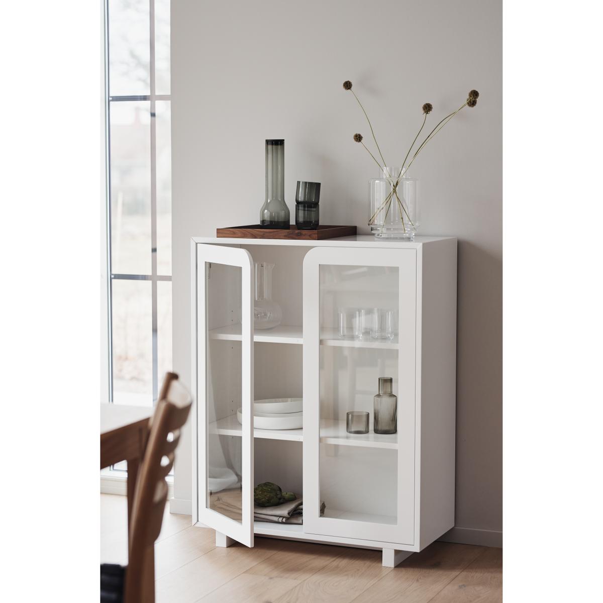 I’m a big fan of this white low display cabinet for its clean lines and subtle detailing around the doors - it never overwhelms a room. It sits beautifully in Scandinavian, minimalist or coastal schemes, where its crisp finish complements light woods and soft textiles. For styling, group a mix of ceramics, glassware and a few coffee-table books on each shelf, varying heights and textures, and leave a little breathing space to keep the look uncluttered. A trailing plant on top adds a fresh, informal touch.