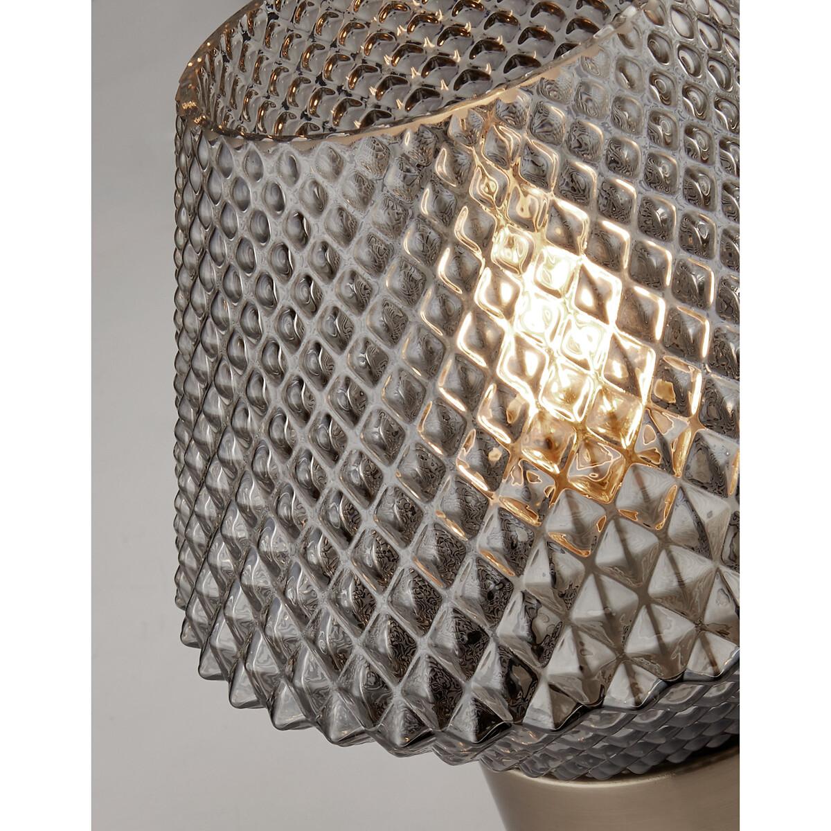 Beautifully detailed design is the smoked glass table lamp with a textured base. Simple but decorative to add to your home. Product Dimensions: 15cmx15cmx17.5cm Bulb Type: E27 Max Watt:10W. Number of Bulbs Required: 1. Bulb included?:No. Cable:Black 0.75mm 2 core PVC Length 1.8m. This product will be dispatched by one of our trusted suppliers. You’ll be contacted by their selected courier about your delivery.