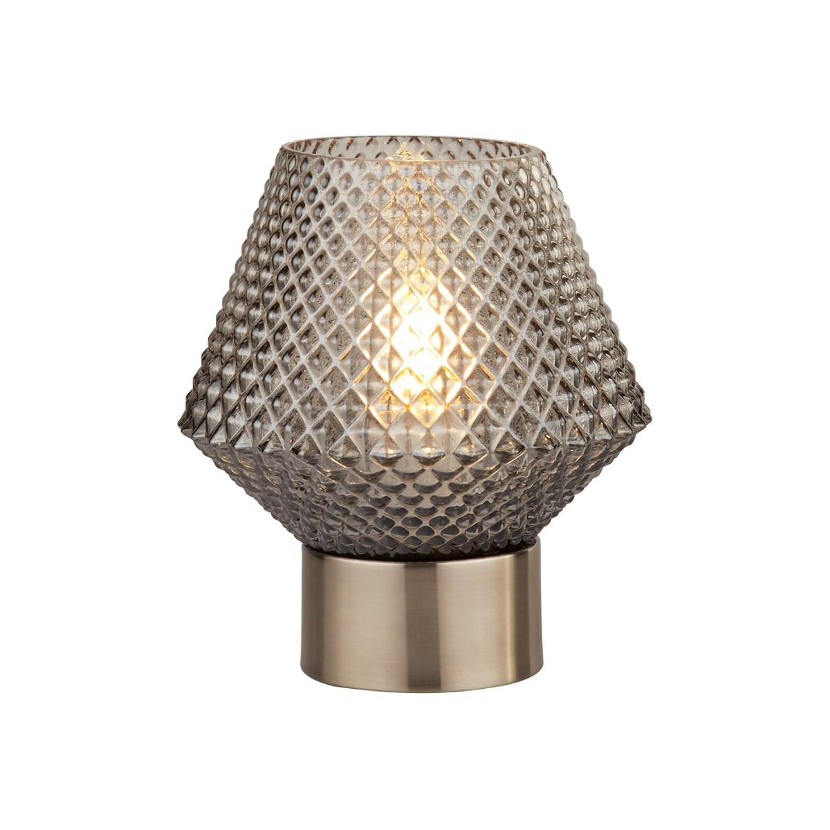 18cm Dark Grey Textured Smoked Glass Table Lamp