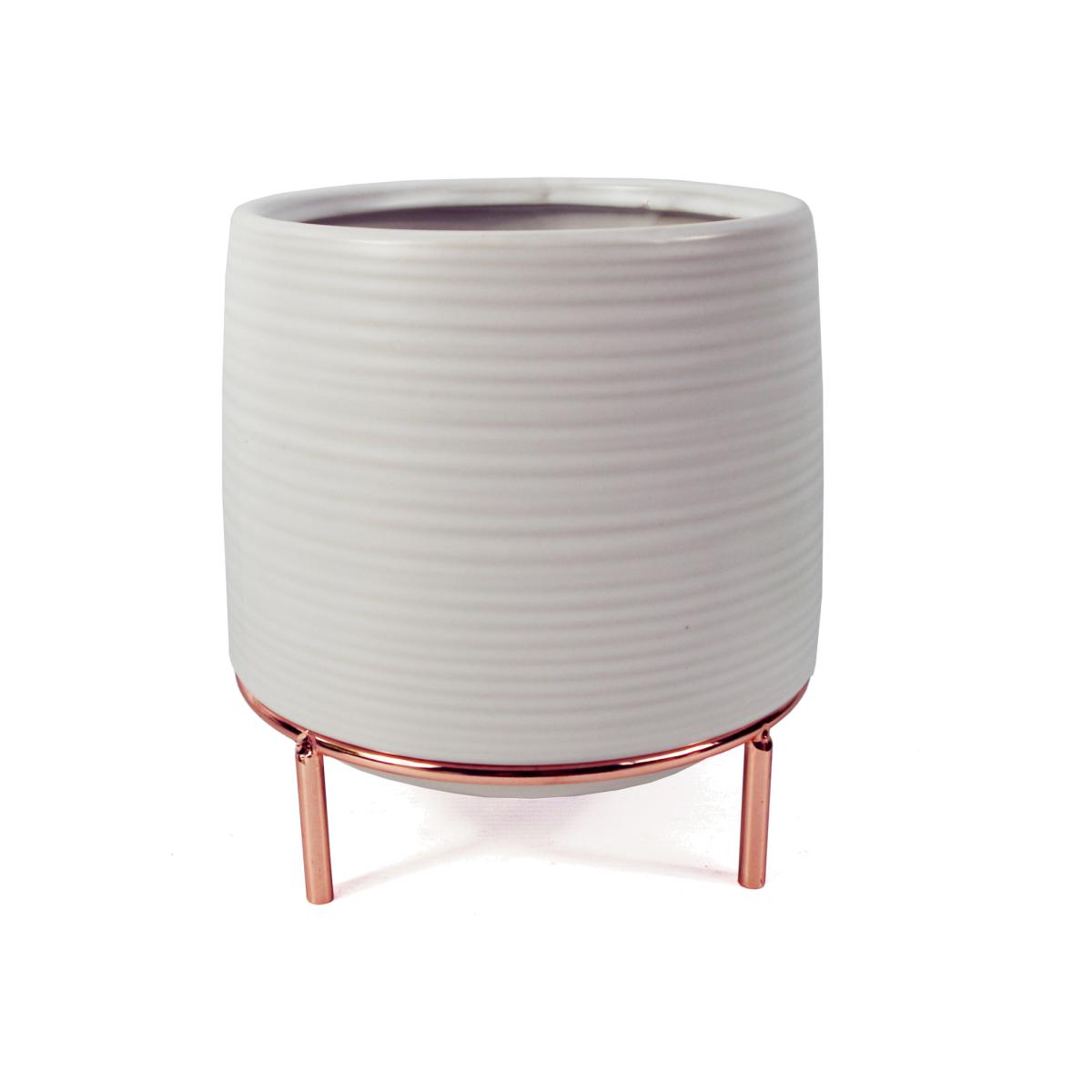 18cm White Ceramic Planter with Metal Stand - White