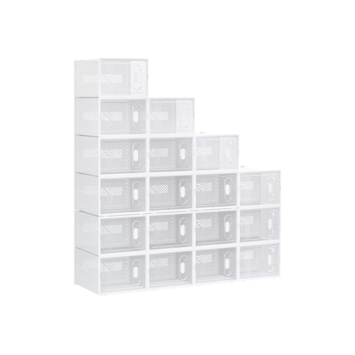 18PCS Stackable Clear Plastic Shoe Storage Box - White