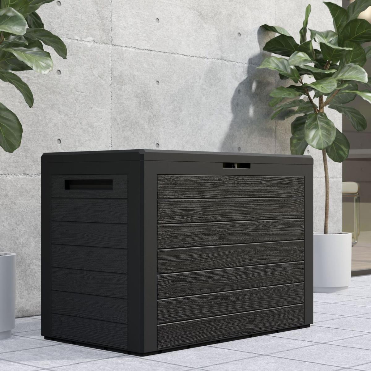 I love this black garden storage box for its sleek, modern design that easily complements contemporary and minimalist outdoor spaces. Its anthracite finish makes it versatile enough to work in both neutral or bold colour schemes, adding to its practicality and style. A great tip is to pair it with similar dark-toned planters or furniture for a cohesive look, or to use it as a statement piece against lighter garden features. It's especially useful in smaller gardens or patios where smart storage solutions are essential, helping to keep outdoor tools, cushions, or accessories organised without sacrificing style. Its sturdy construction means it’s both functional and durable, making it an excellent buy for a tidy, streamlined garden aesthetic.