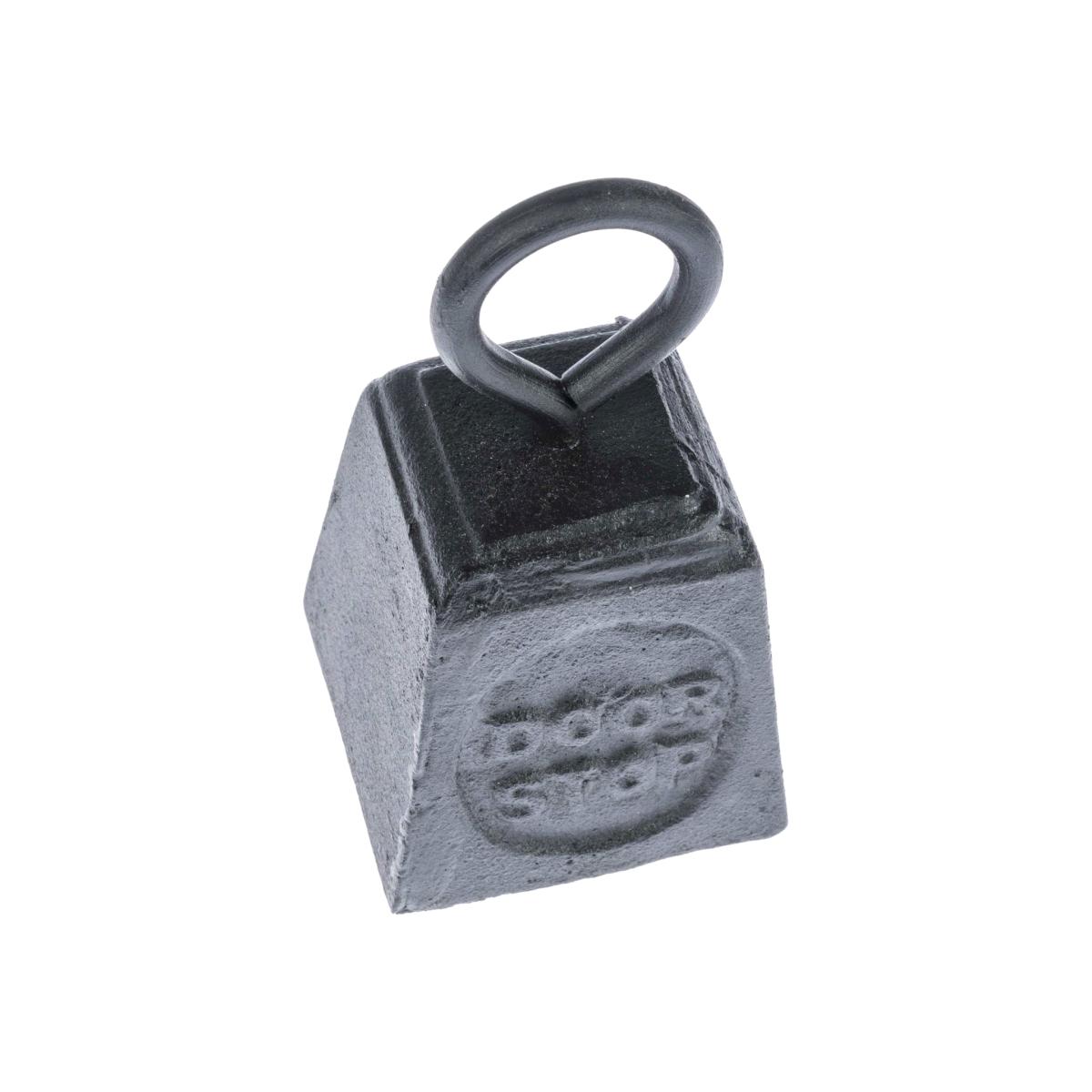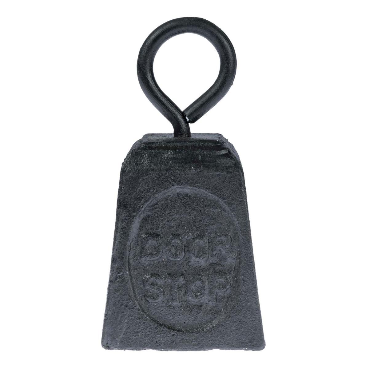 Part of Homescapes' range of cast iron home accessories and heavy doorstops, this quirky door stop is great for a country farmhouse look or for giving a more contemporary interior a traditional touch. This unusual metal door stopper features a traditional weighing measure shape, embossed with the words 'DOOR STOP' and topped with a hanging hook to replicate true vintage measuring weights. Offering a sturdy solution to prop open your doors or windows, this heavy door weight is cast from solid cast iron and glazed with a black powder coating for a durable finish and an antique look.