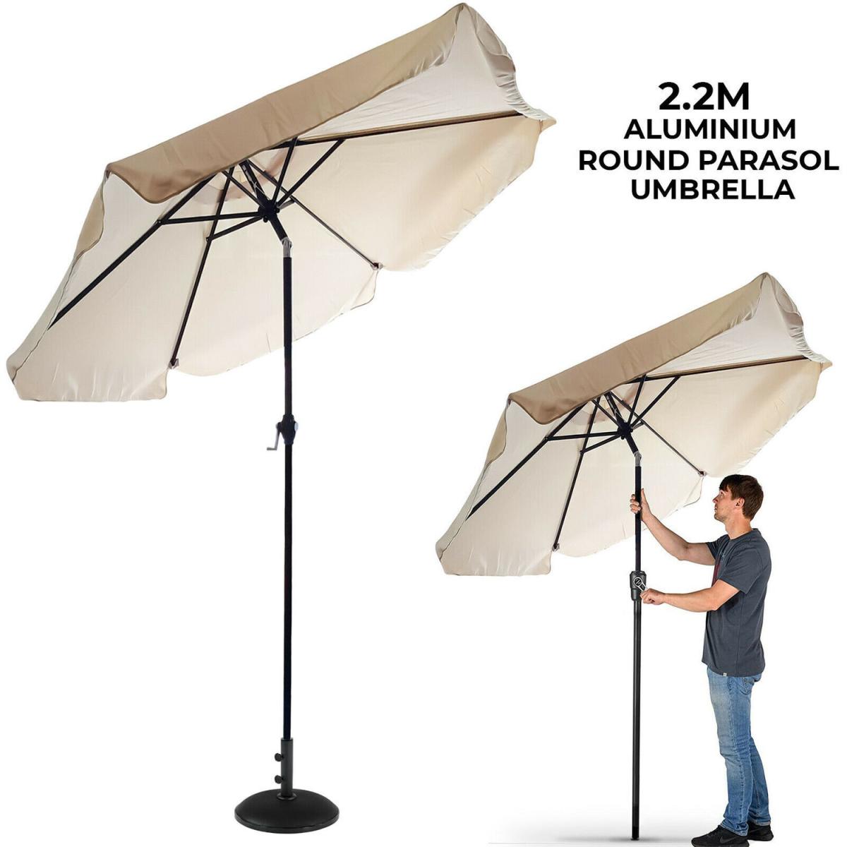 2.2M Parasol Tilt Canopy Patio Sun Shade With Base Included - Beige