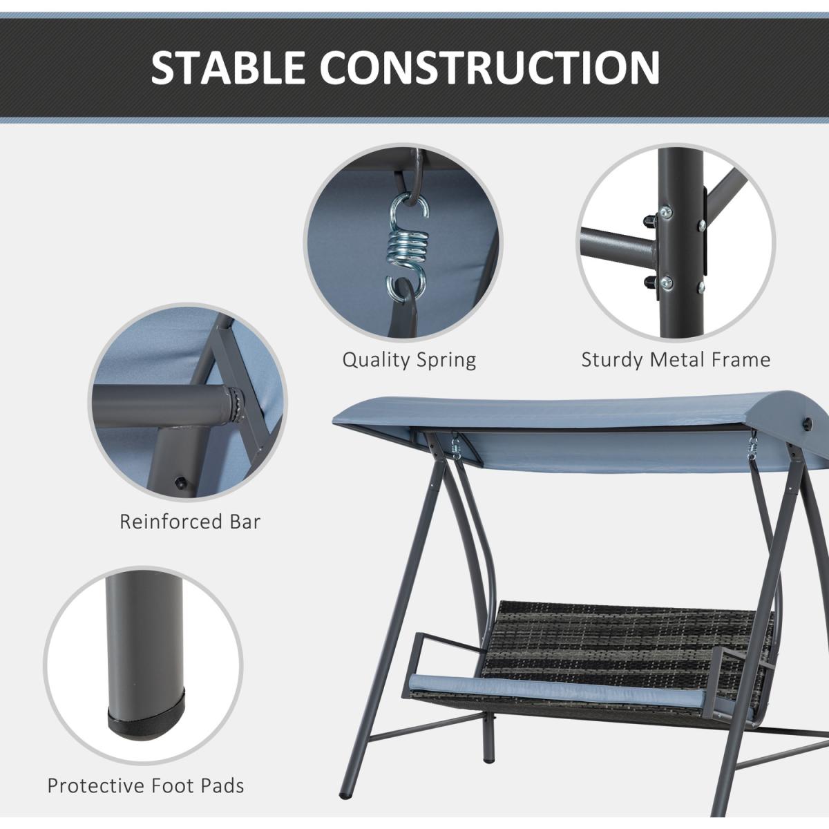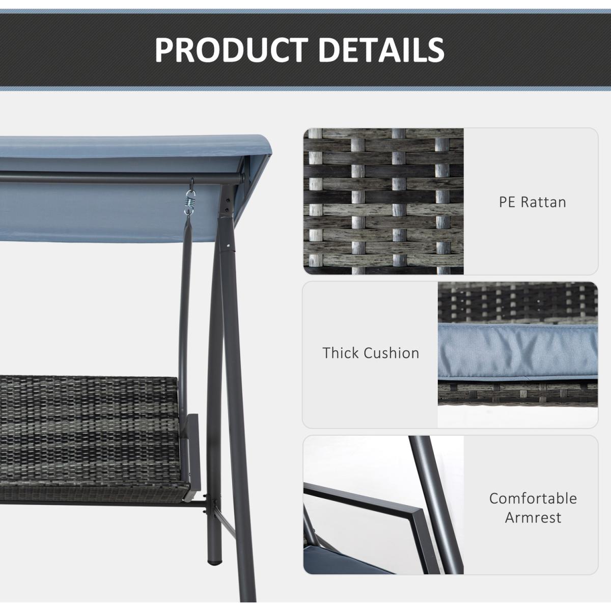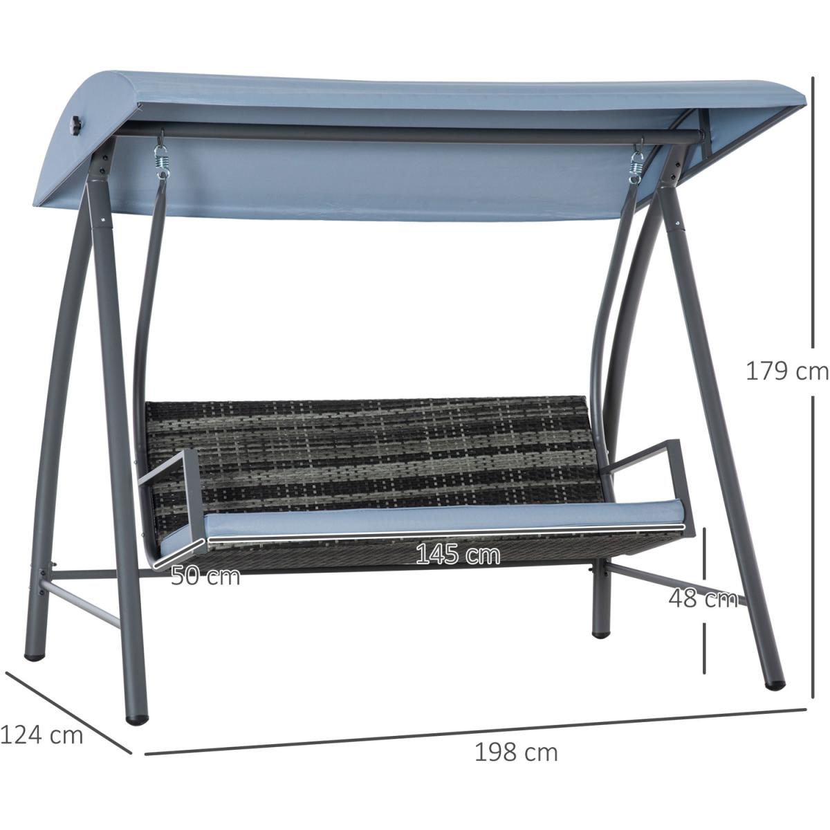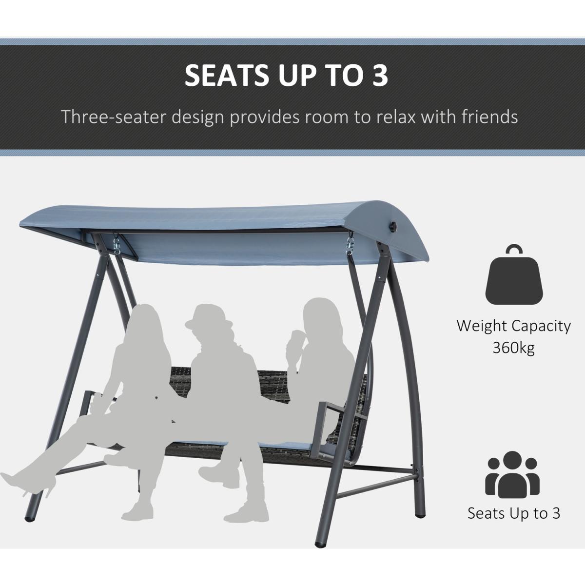 2-3 Seater Outdoor Garden Rattan Swing Chair - Mixed Grey