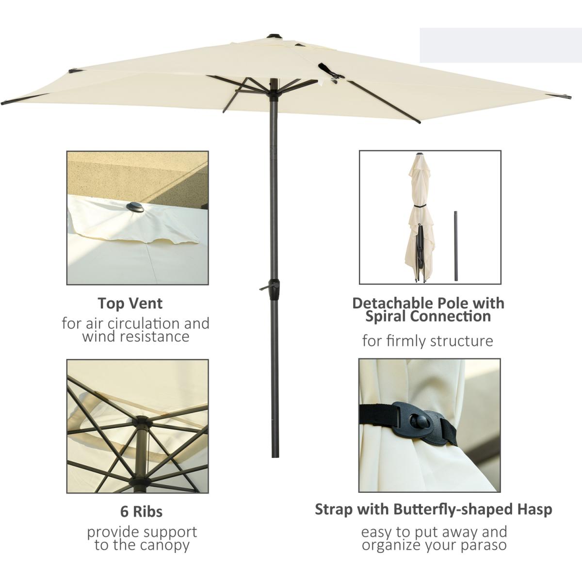2.58m Elegant Aluminium Garden Parasol - Beige