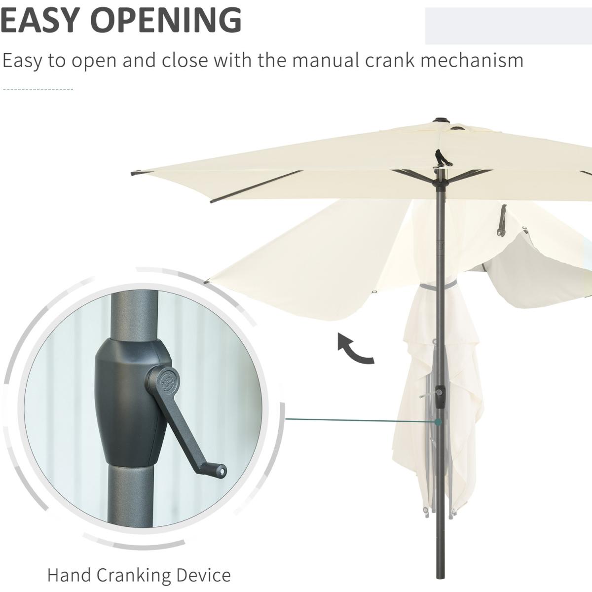 Protect yourself from the sun in simple style with this parasol from Outsunny. The pole is made from aluminium, so it's durable and tough. The 180g/m2 polyester canopy will protect you outdoors, you can also adjust the angle at the touch of the operation button. The canopy and frame are connected with six metal ribs for extra strength and support. The perfect blend of beauty and function.
