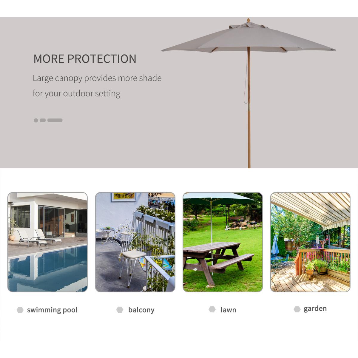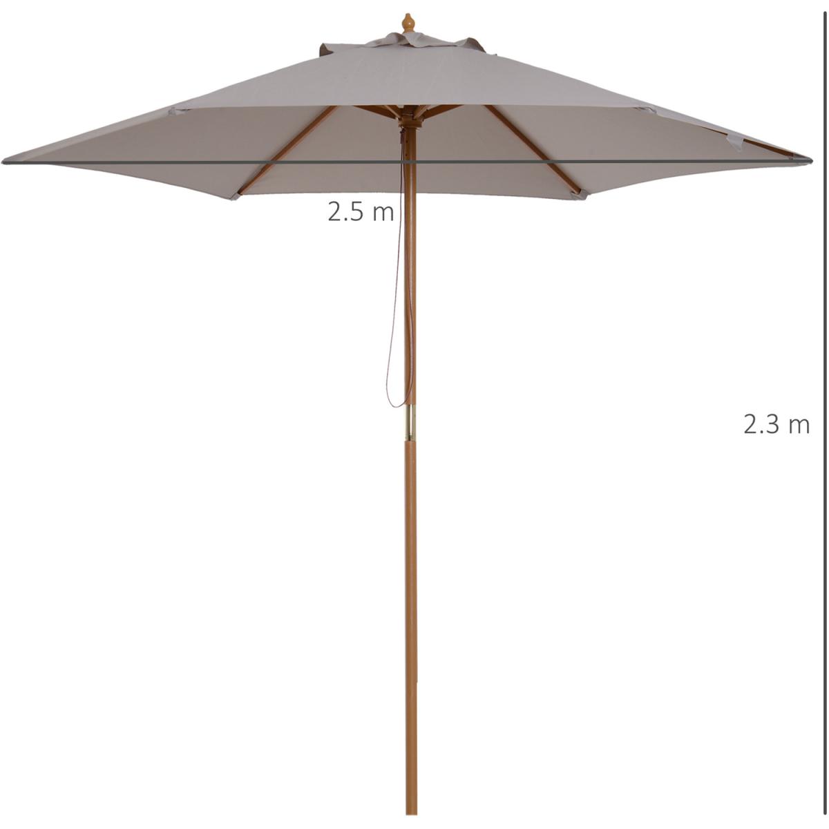 2.5m Wood Garden Parasol - Grey