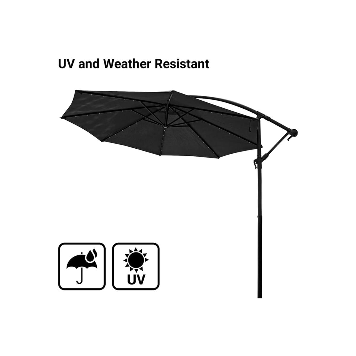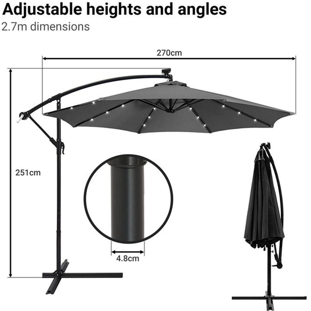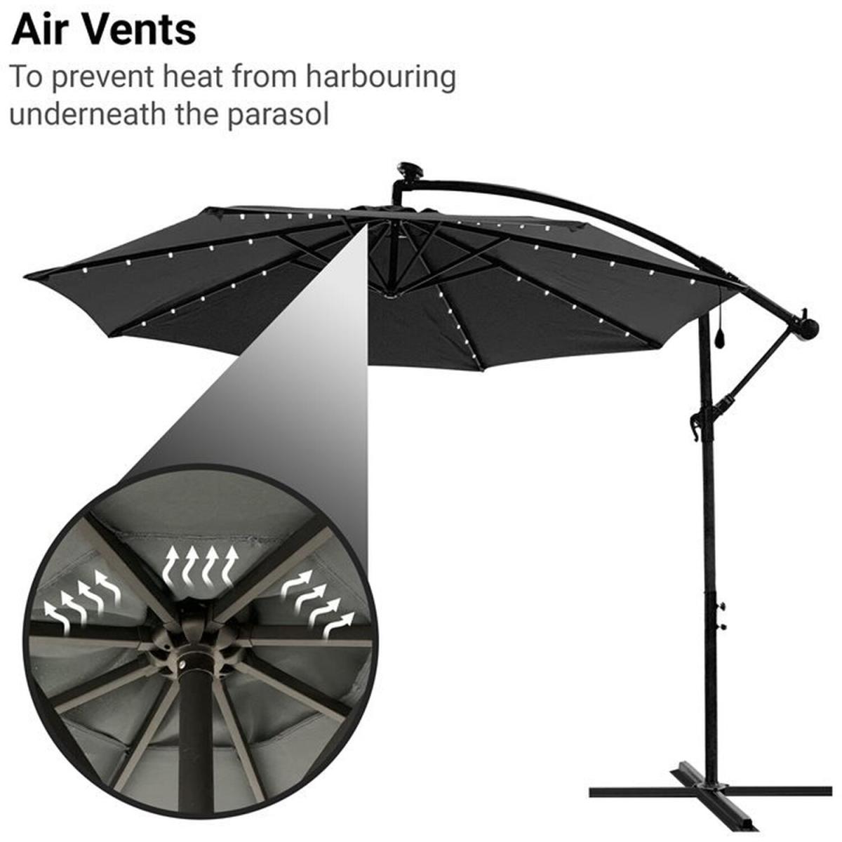 2.7m Crank and Tilt Parasol 8 Ribs with LED Lights - Black