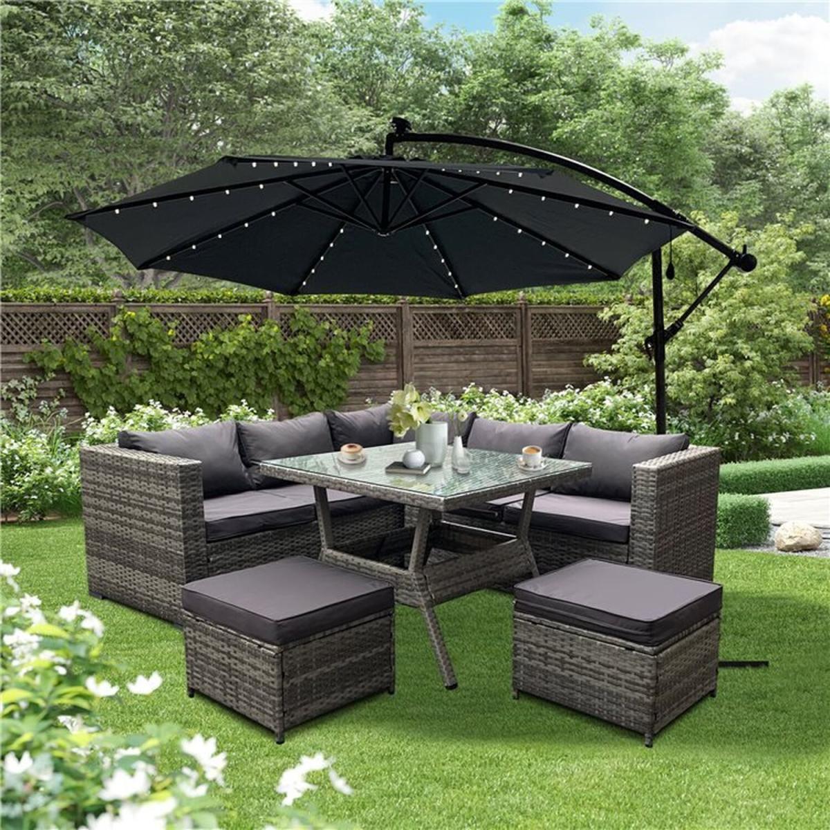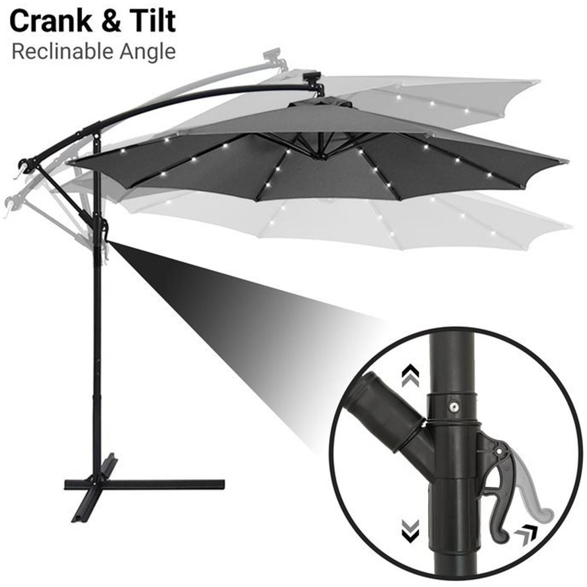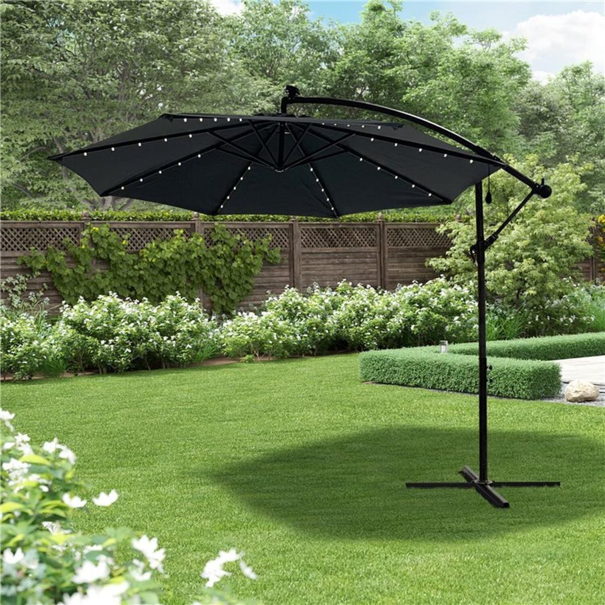 2.7m Crank and Tilt Parasol 8 Ribs with LED Lights - Black