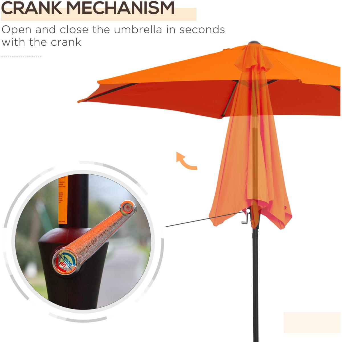 The Outsunny patio umbrella is an ideal choice to enjoy the shade in sunny days, that can tilt for better protection. The umbrella is constructed with a metal and aluminium frame and the shade is made of polyester fabric. Featuring classic colour and sleek lines, it is designed to maximize shade capability. Suitable for patio, garden, and can be used with existing garden furniture. The metal structure and 180g/m2 polyester fabric gives optimum support and long-lasting features.