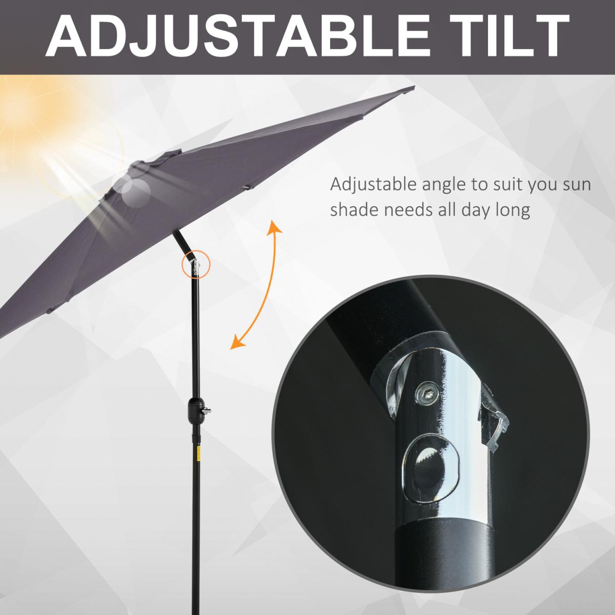 2.7M Patio Tilt Umbrella Sun Parasol - Grey