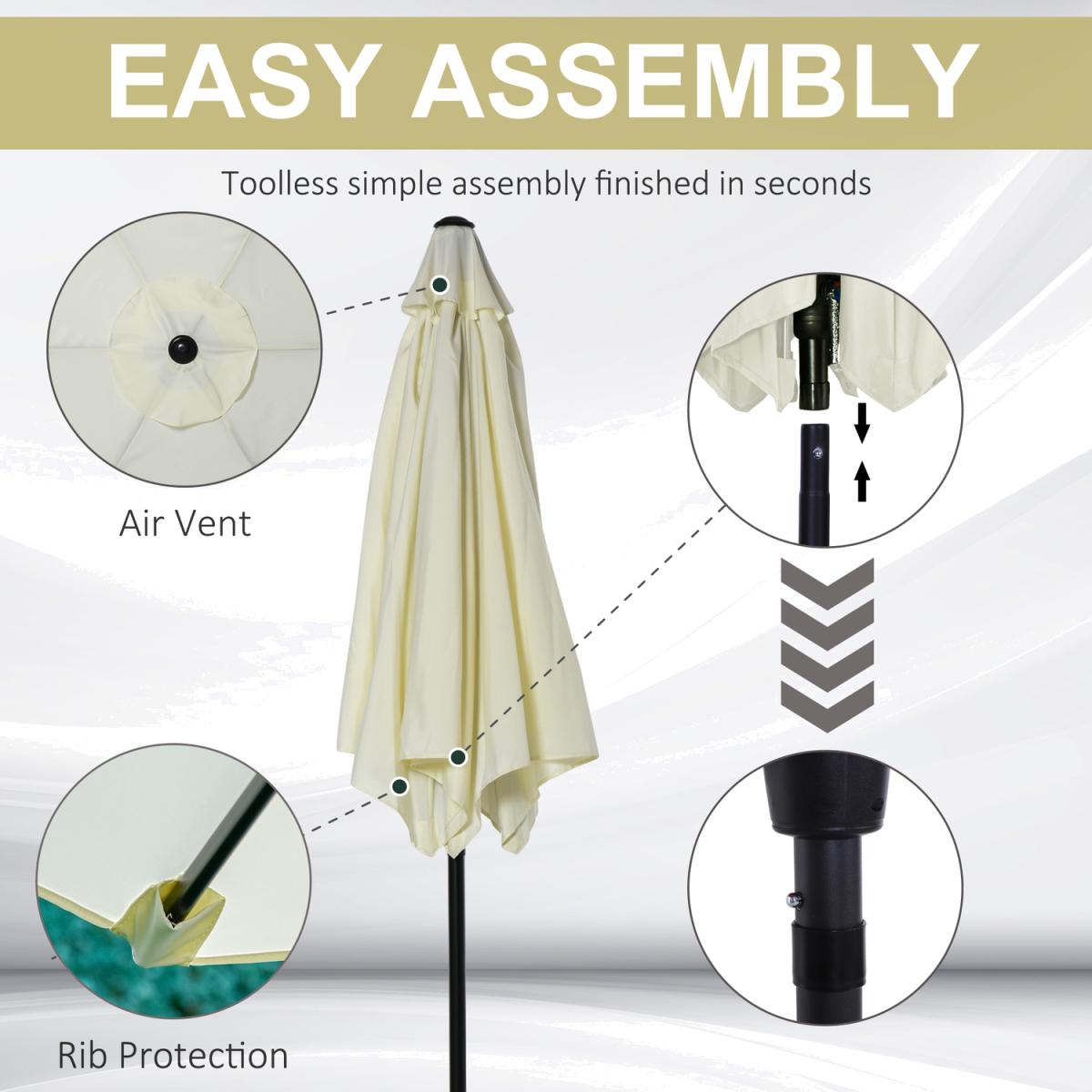 The Outsunny patio umbrella is an ideal choice to enjoy the shade in sunny days, that can tilt for better protection. The umbrella is constructed with a metal and aluminium frame and the shade is made of polyester fabric. Featuring classic colour and sleek lines, it is designed to maximize shade capability. Suitable for patio, garden, and can be used with existing garden furniture. The metal structure and 180g/m2 polyester fabric gives optimum support and long-lasting features.