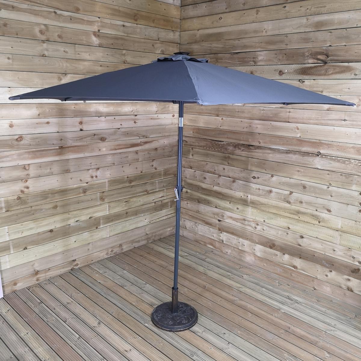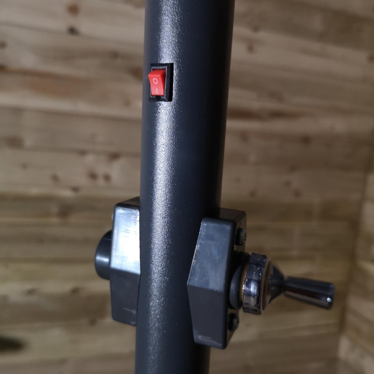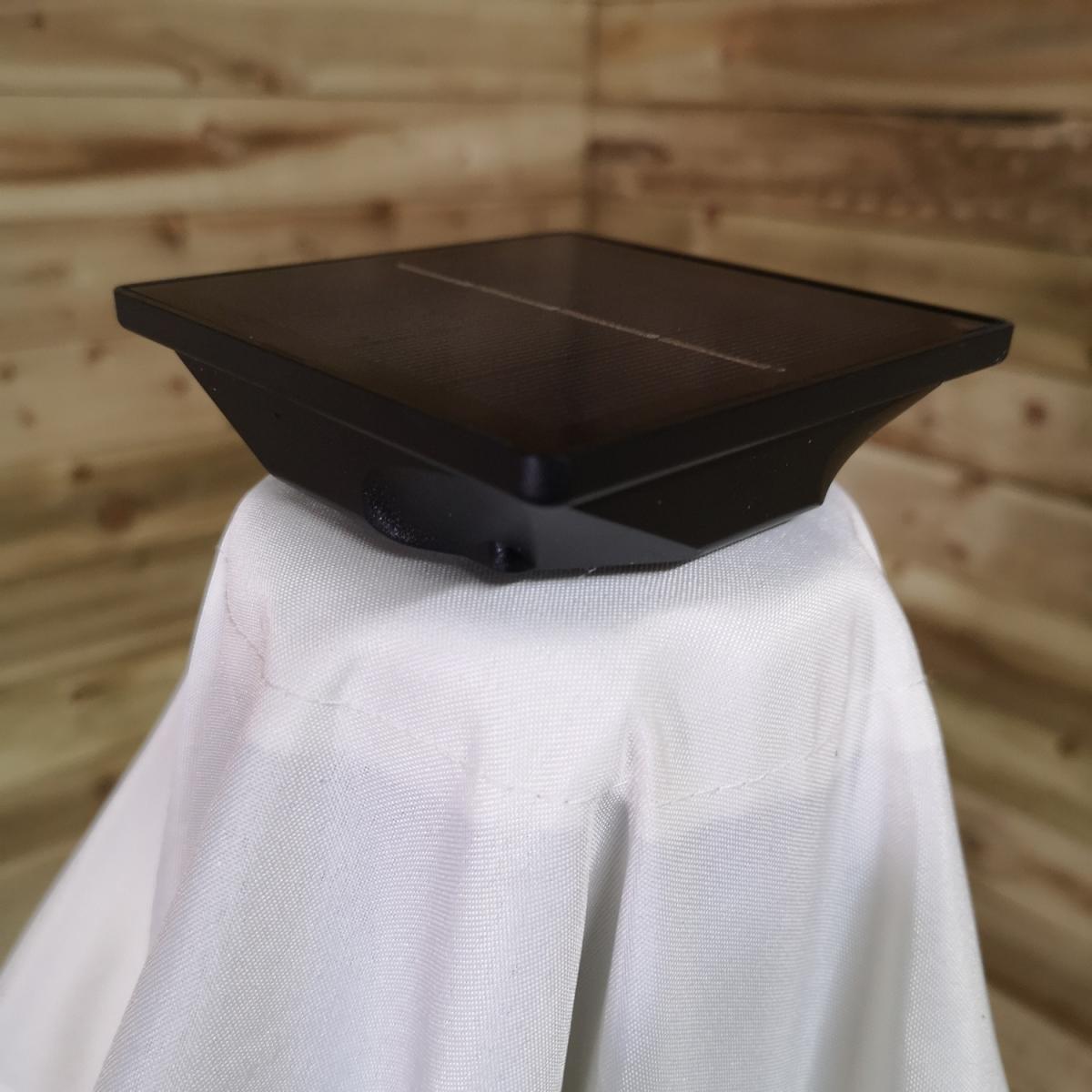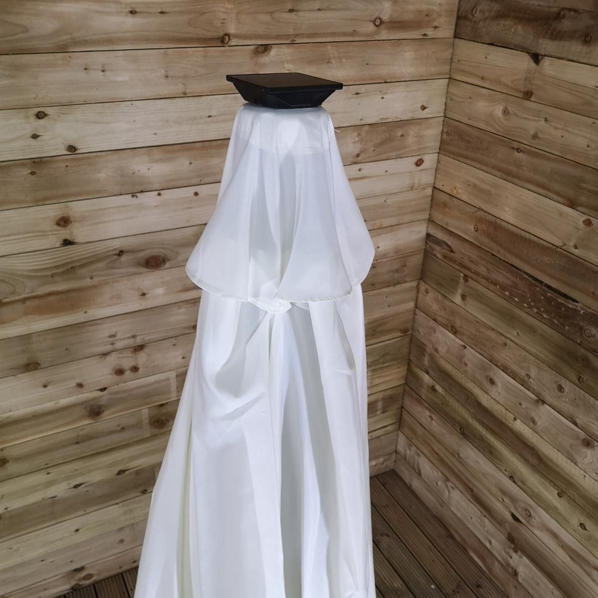 This light-up SPF30 parasol is perfect to create some shade and protect you from the sun's harmful UV rays, whilst doubling up as a source of lighting once the sun has set. Simply attach the solar unit to the top of the canopy, and connect the two poles, ensuring that the locking clips are secured. Wind the crank handle to raise and lower the steel ribs, tilt mechanism can be activated by the press on a button and turning on the lights at the flick of a switch. The replaceable battery takes approximately 8-12 hours to charge in normal daylight, the lamp illuminates for around 6 hours. Simply wipe clean with a damp sponge or cloth and allow to dry. We would recommend using the parasol with a sturdy base, (sold separately), and must be safely stored when not in use.