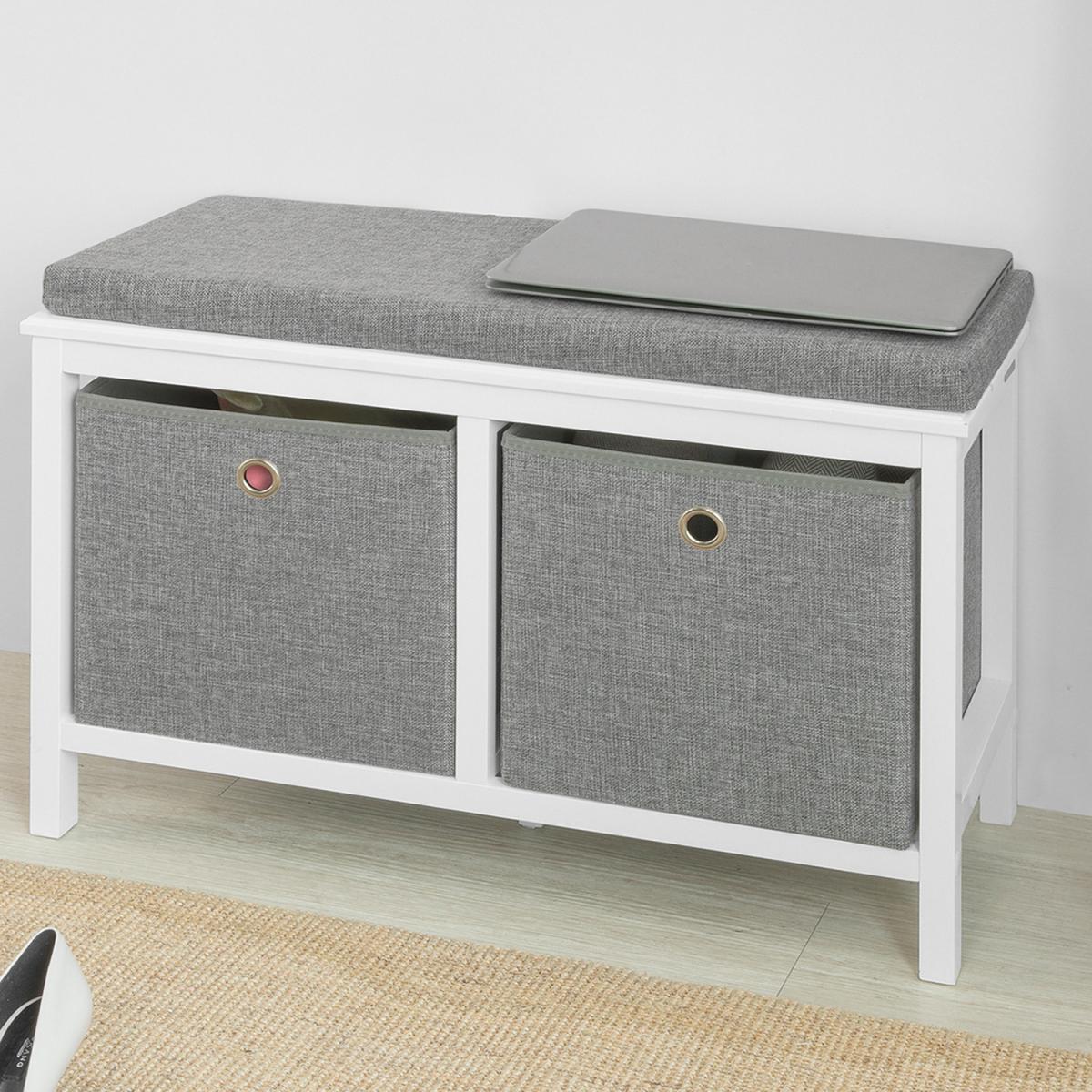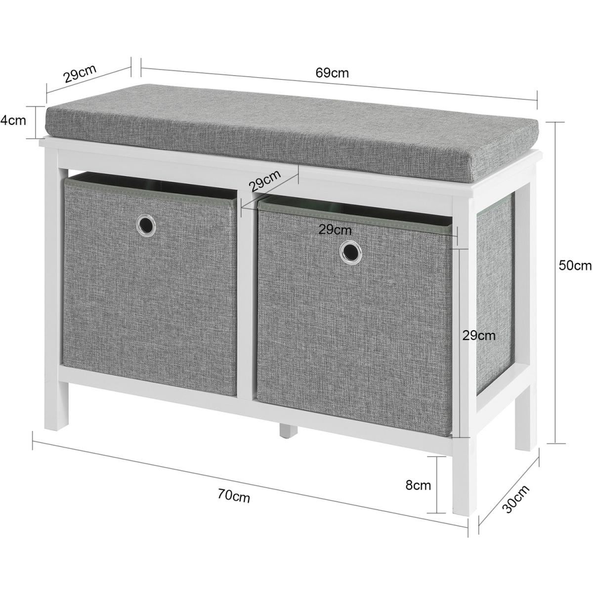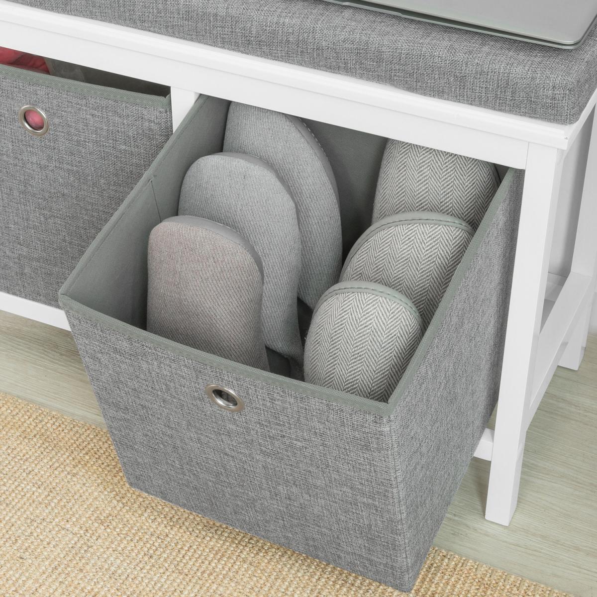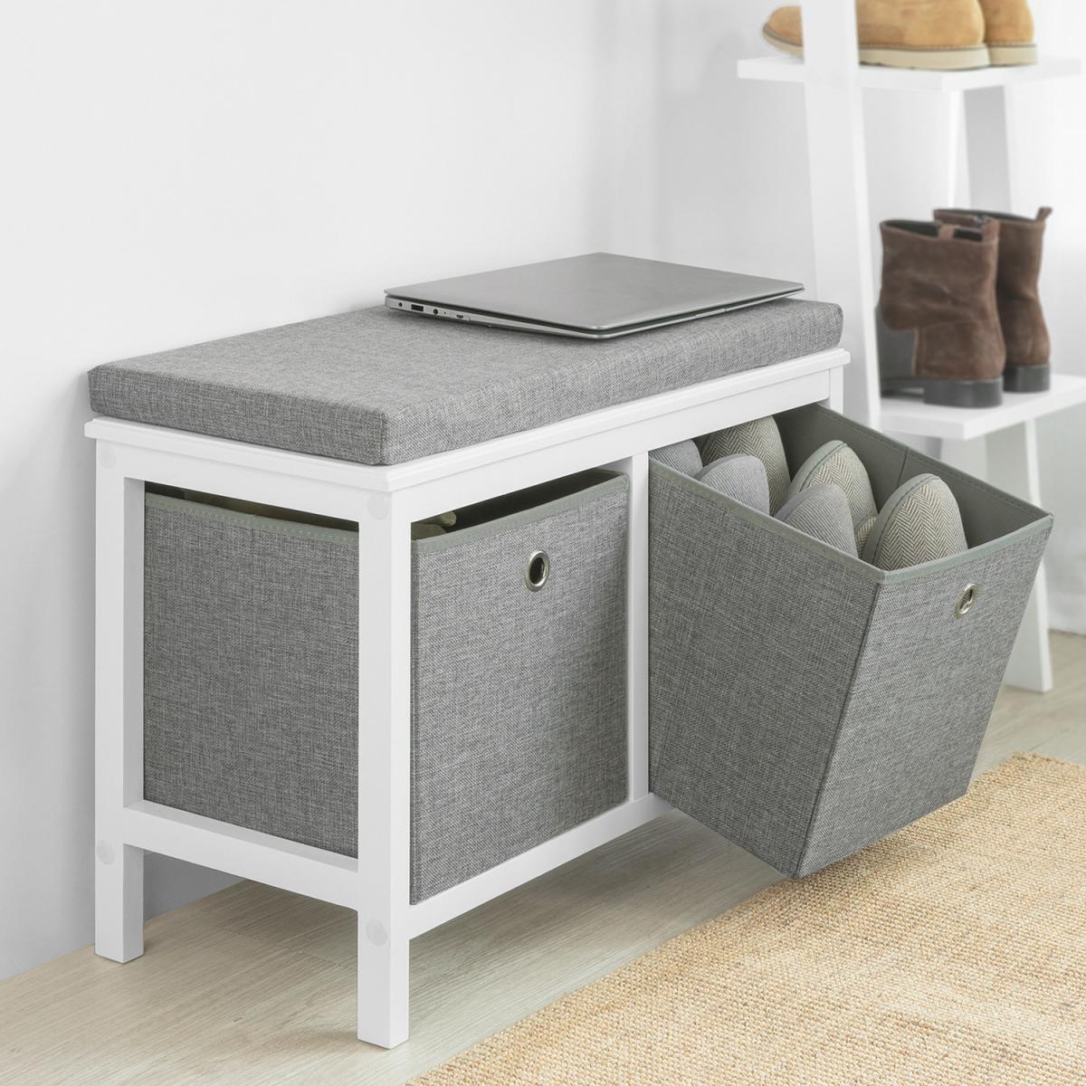 2 Baskets Shoe Cabinet with Seat Cushion - Grey