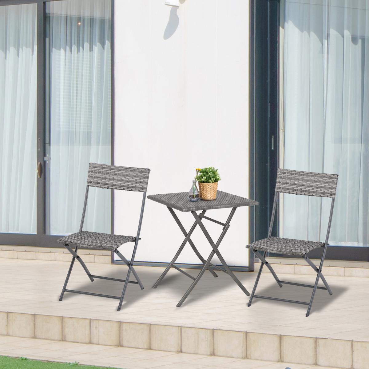 This 3 piece rattan bistro coffee set is a great solution for your garden, patio or balcony Made with high-quality metal tubing and covered with PE rattan, it will last for years to come The set consists of 1 table and 2 chairs, a great addition to any home The whole set can be easily be folded and stored away to create space when not in use, this set is not just useful but practical.