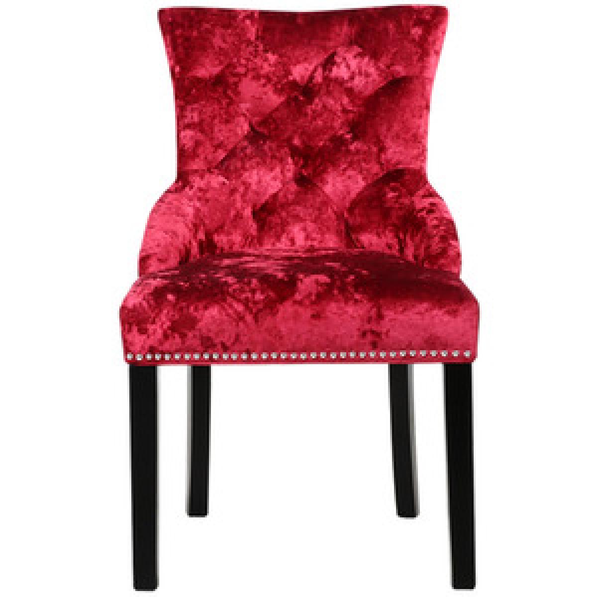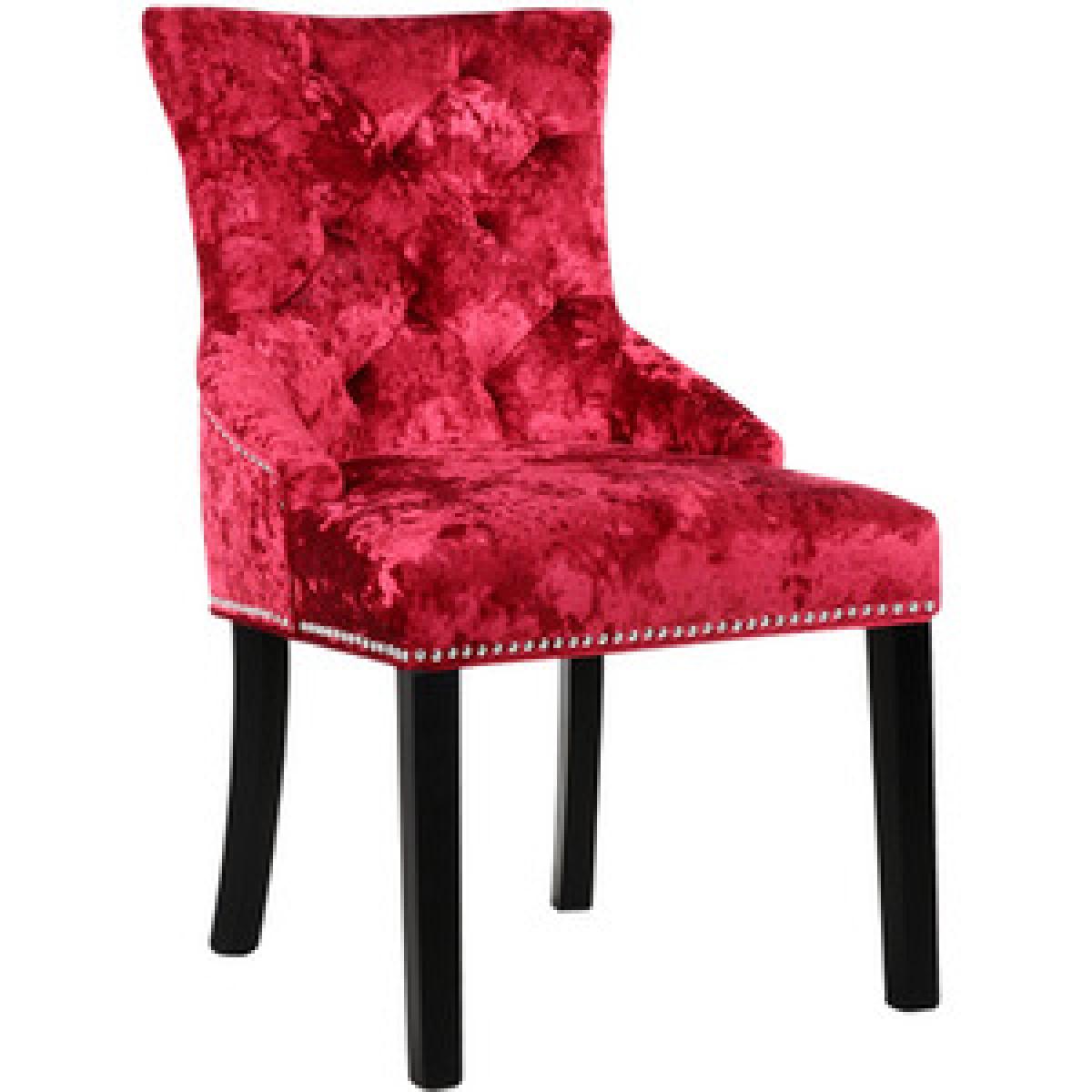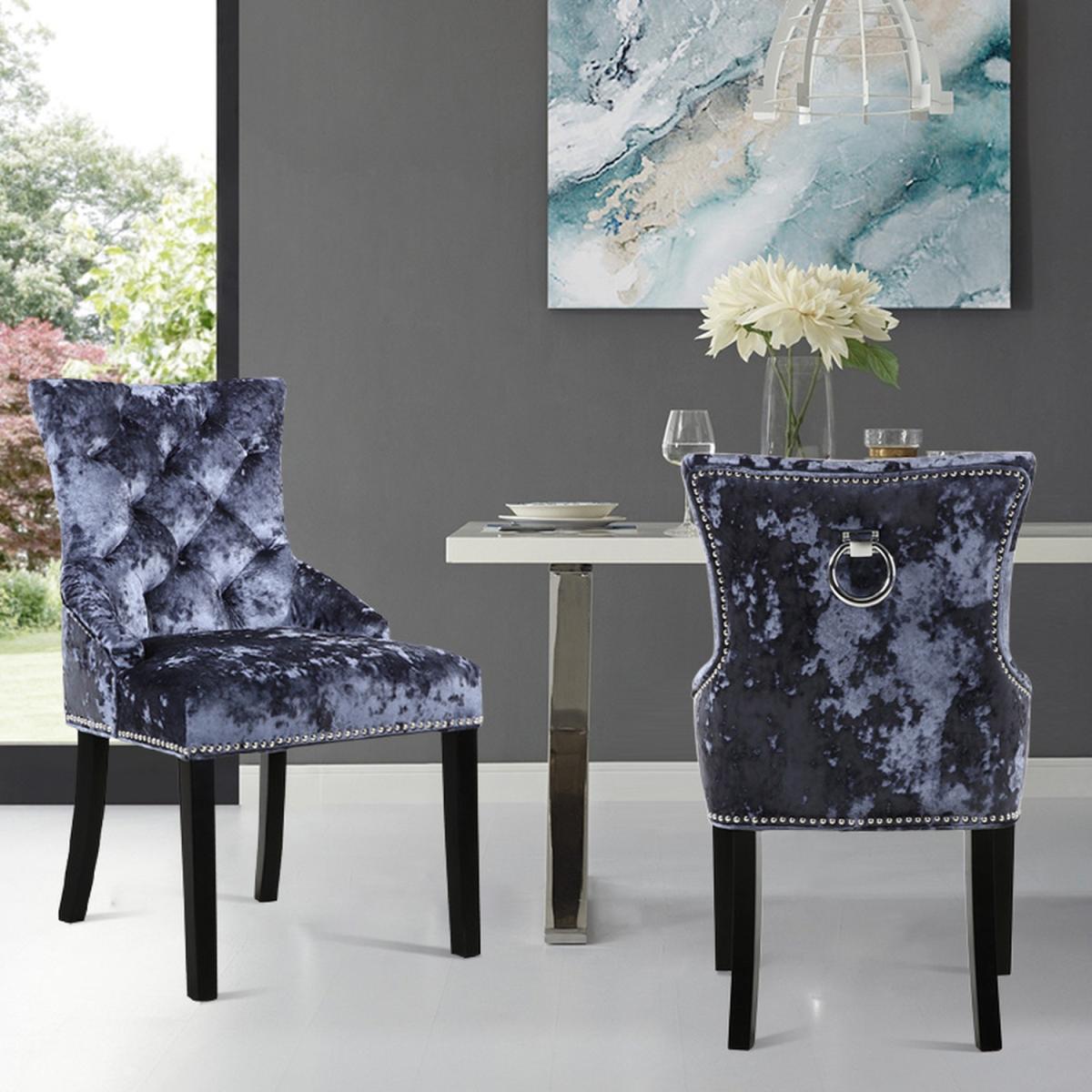 Offering an irresistible combination of design and value, this set of chairs feature a high wingback with button detailing, metal nail and Lion knocker on its backside for decoration. Bringing a twist of modern gothic, this luxuriously upholstered and studded chair will have you sitting in style for hours. This was integral that this classical design trickled into a comfortable, modern aesthetic.