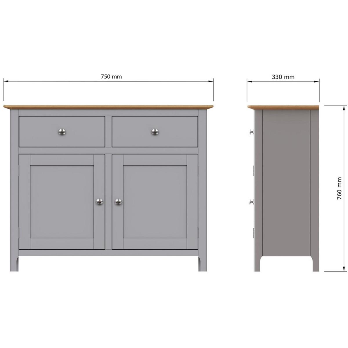 2 Door 2 Drawer Solid Oak Sideboard Ready Assembled - Grey