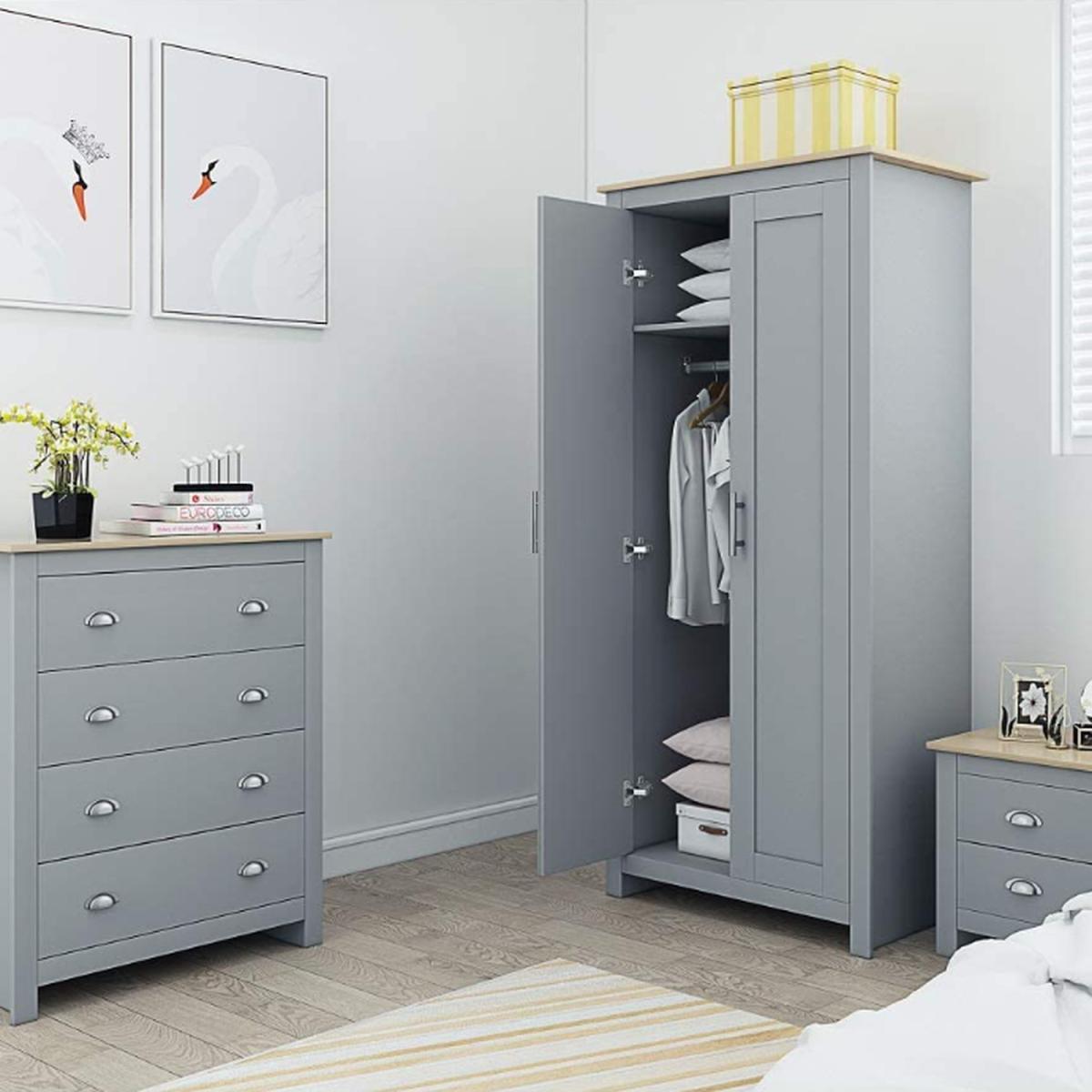 Keep shabby chic and shaker-style traditions alive with a 70s-style traditional Westbury two-door wardrobe. Built for the long term, the Westbury range is unique in it's ability to pull space, practicality and stunning visuals together. Loaded with an easy-clean and scratch-resistant melamine coating any un-warranted spills and scratches can be fought off and the stunning polished metal T-Bar and cup handles offer a softer opening touch and add to the visual effects that the wardrobe has to offer. Celebrate your traditions with a Westbury 2-door wardrobe and breathe in its shaker chic glory.