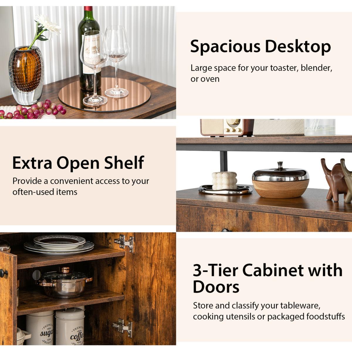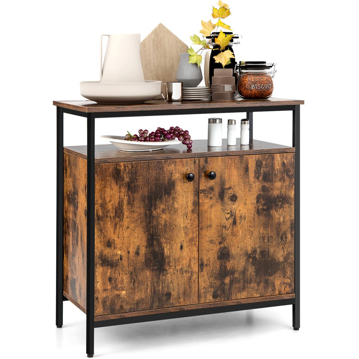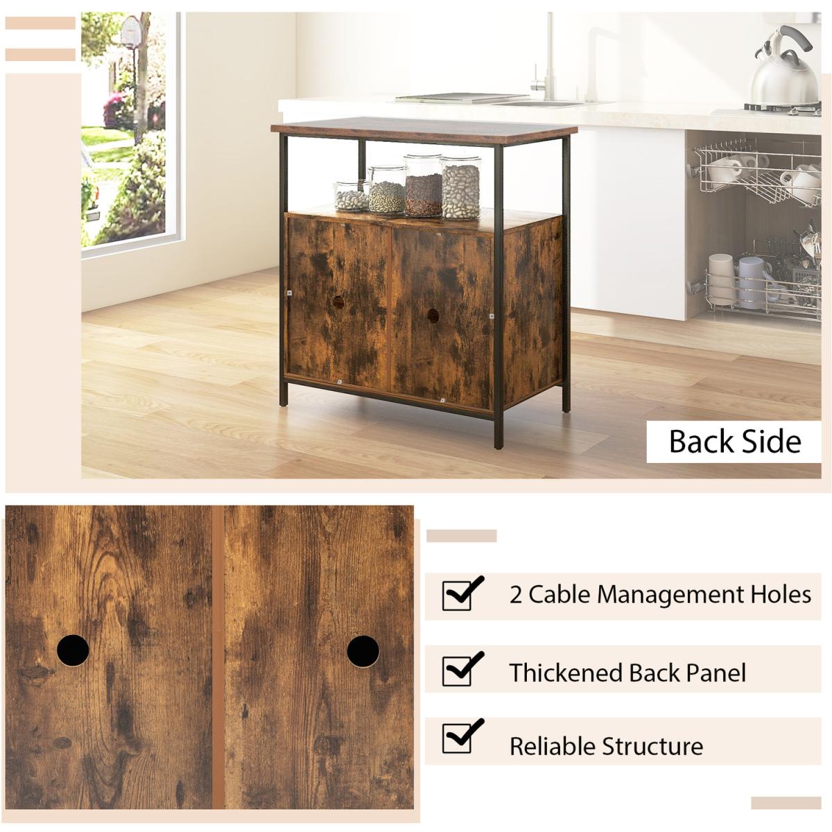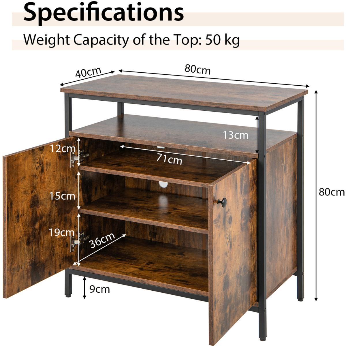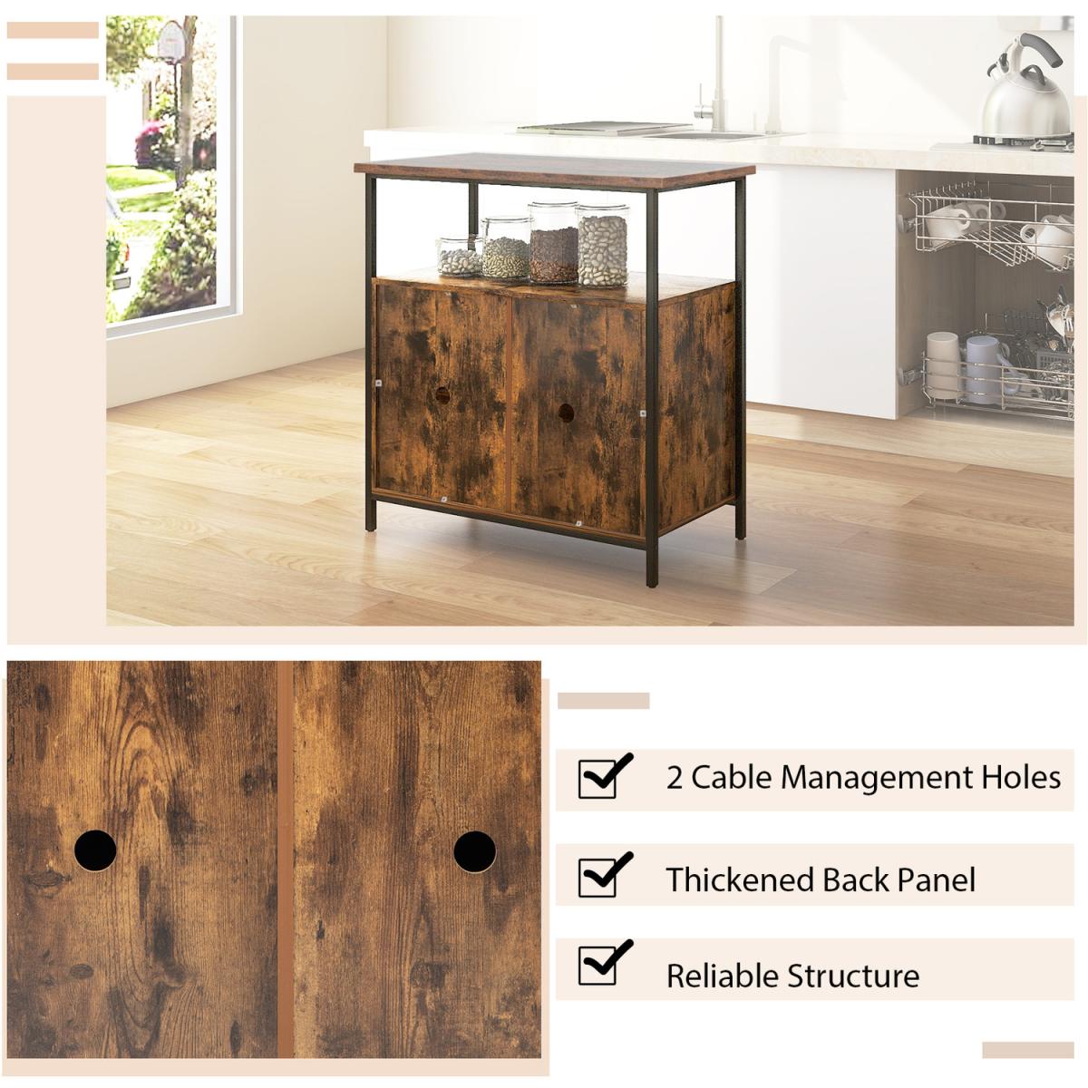 Give your kitchen a new look with this high-capacity storage cabinet! There's no doubt that having plenty of storage space is a must for a great dining cabinet. Our buffet has a spacious tabletop and a double-door cabinet with internal shelves, helping store and classify your tableware, cooking utensils or packaged foodstuffs. In addition, with a heavy-duty metal frame, our storage cabinet features a high level of strength. And the adjustable foot pads on the bottom further increase the stability. Its surface is elegantly coloured, water resistant, and adaptable to any style of decoration. Whether you place it in your entry, living room or kitchen, it will be a perfect addition.