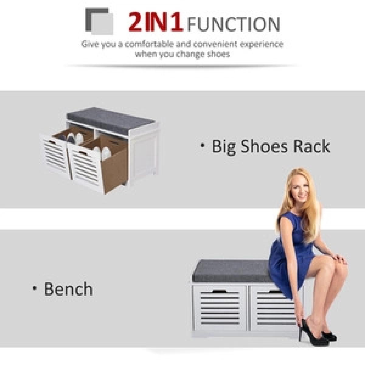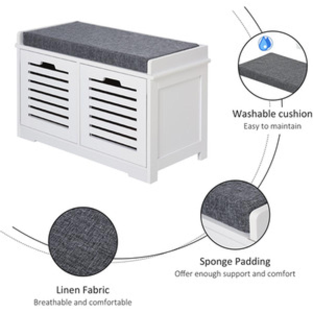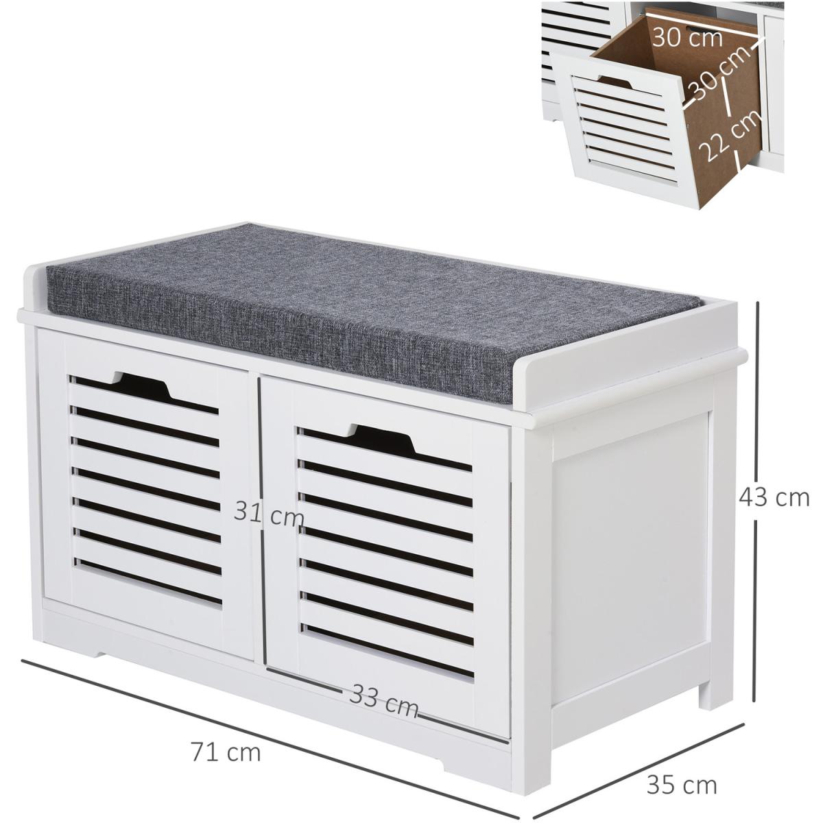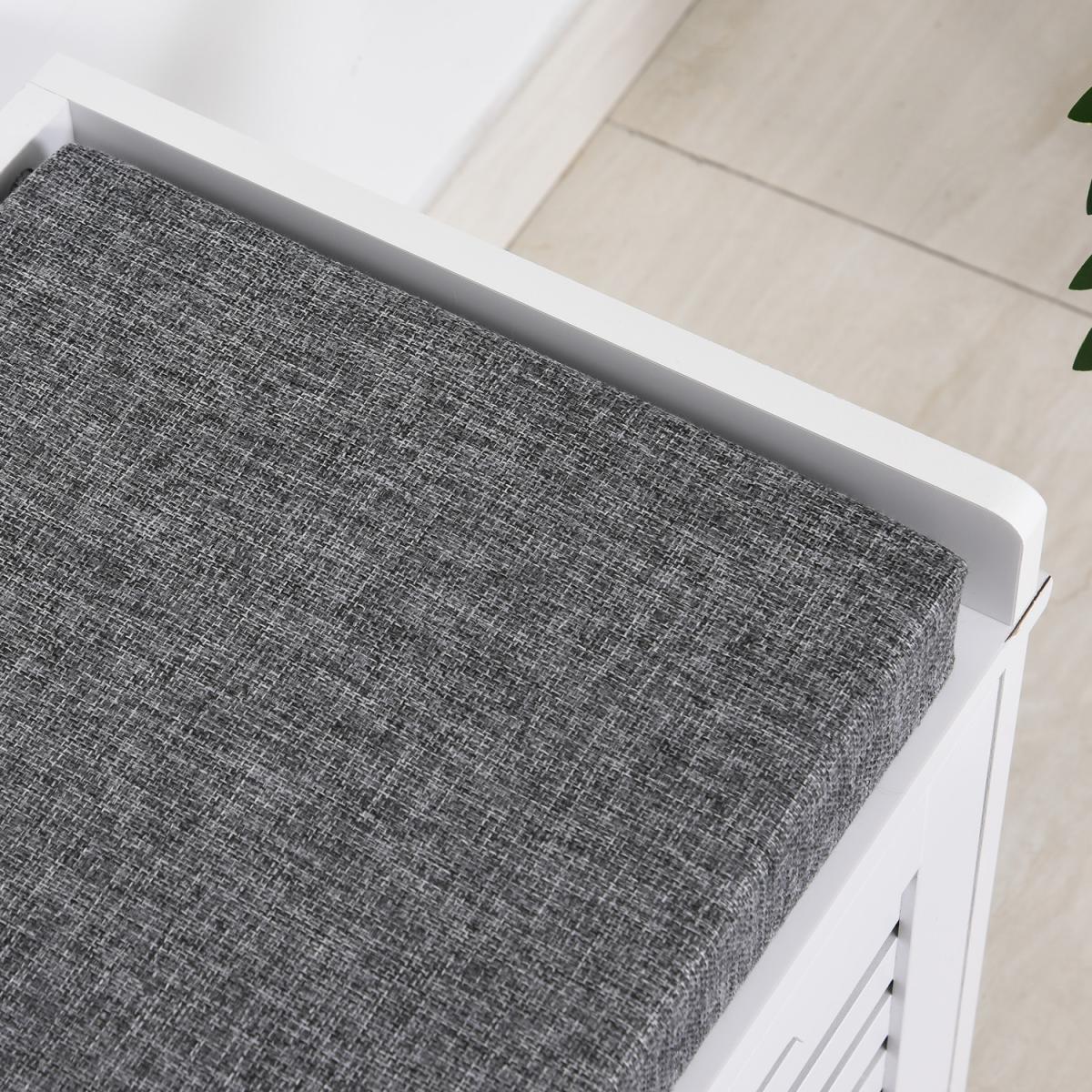 Give your shoes somewhere proud to stand with this storage unit from HOMCOM. Its design is made of two compartments for lots of holding space, with a flat cushioned top so you are able to sit on it. Made from MDF, the frame is tough and reliable for everyday use, finished in white for a fresh focal point in your home. Using a sponge for the cushion for comfort, it is wrapped in linen so it is smooth and easy to wipe clean. The slatted doors of the compartments allow fresh air to circulate through, with low corner feet elevating the unit to finish. An effortlessly easy space saver you'll love welcoming into the home.