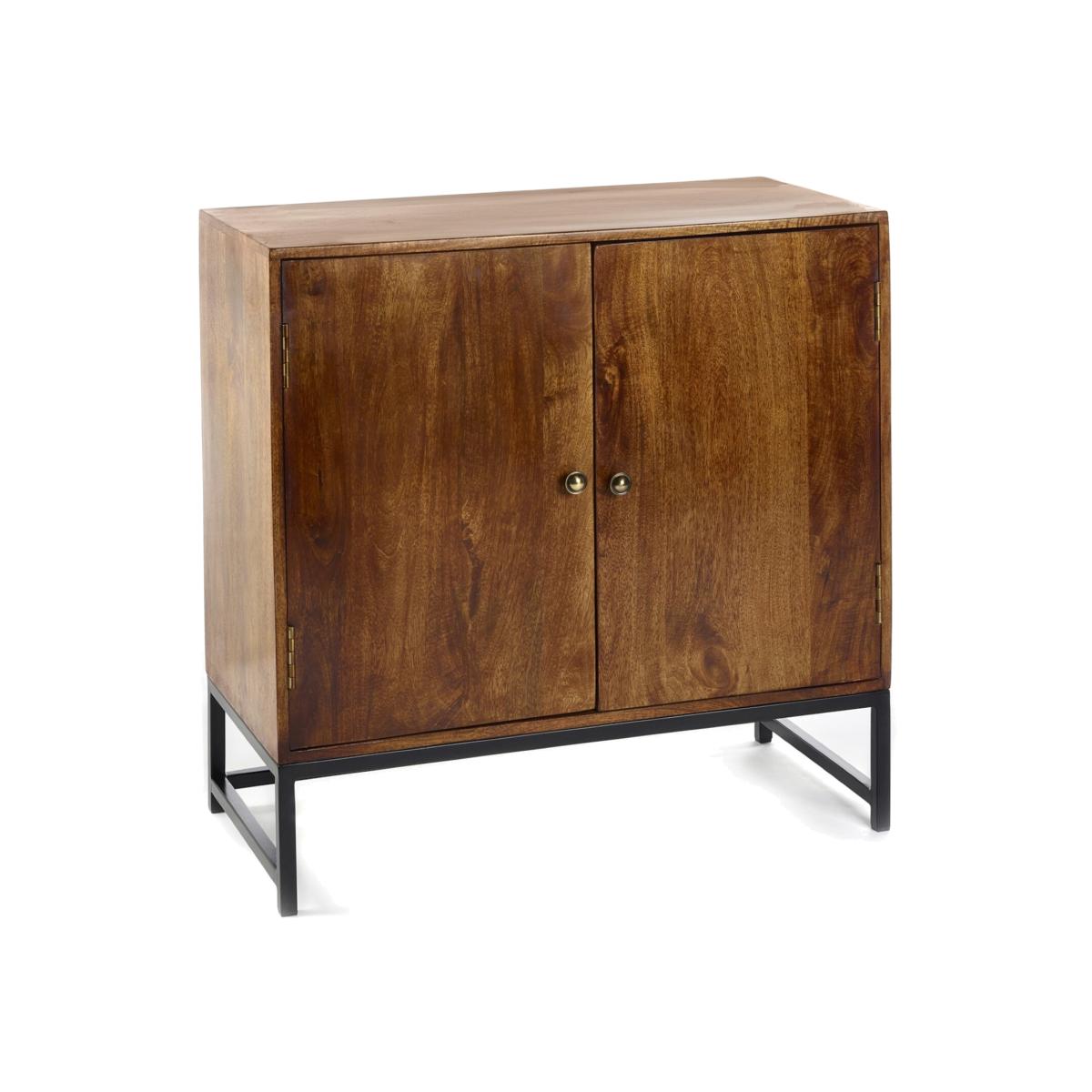 This solid mango wood 2 door sideboard is a perfect blend of natural elegance and industrial design, offering both style and functionality to your living space. Handcrafted from premium, sustainably sourced mango wood, the sideboard boasts a rich, warm finish that highlights the natural grain and unique textures of the wood. Its minimalist, fully assembled design features two spacious doors that open to reveal ample storage for household essentials, from dinnerware to linens, making it ideal for any room. The sturdy metal base provides a modern contrast to the rustic wooden top, ensuring durability and stability while adding an industrial edge to the overall aesthetic. Its sleek black finish complements the natural tones of the mango wood, making it a versatile piece that fits seamlessly with a variety of decor styles, from modern to rustic or industrial. A perfect addition to your home, this sideboard combines timeless beauty with practical storage solutions.